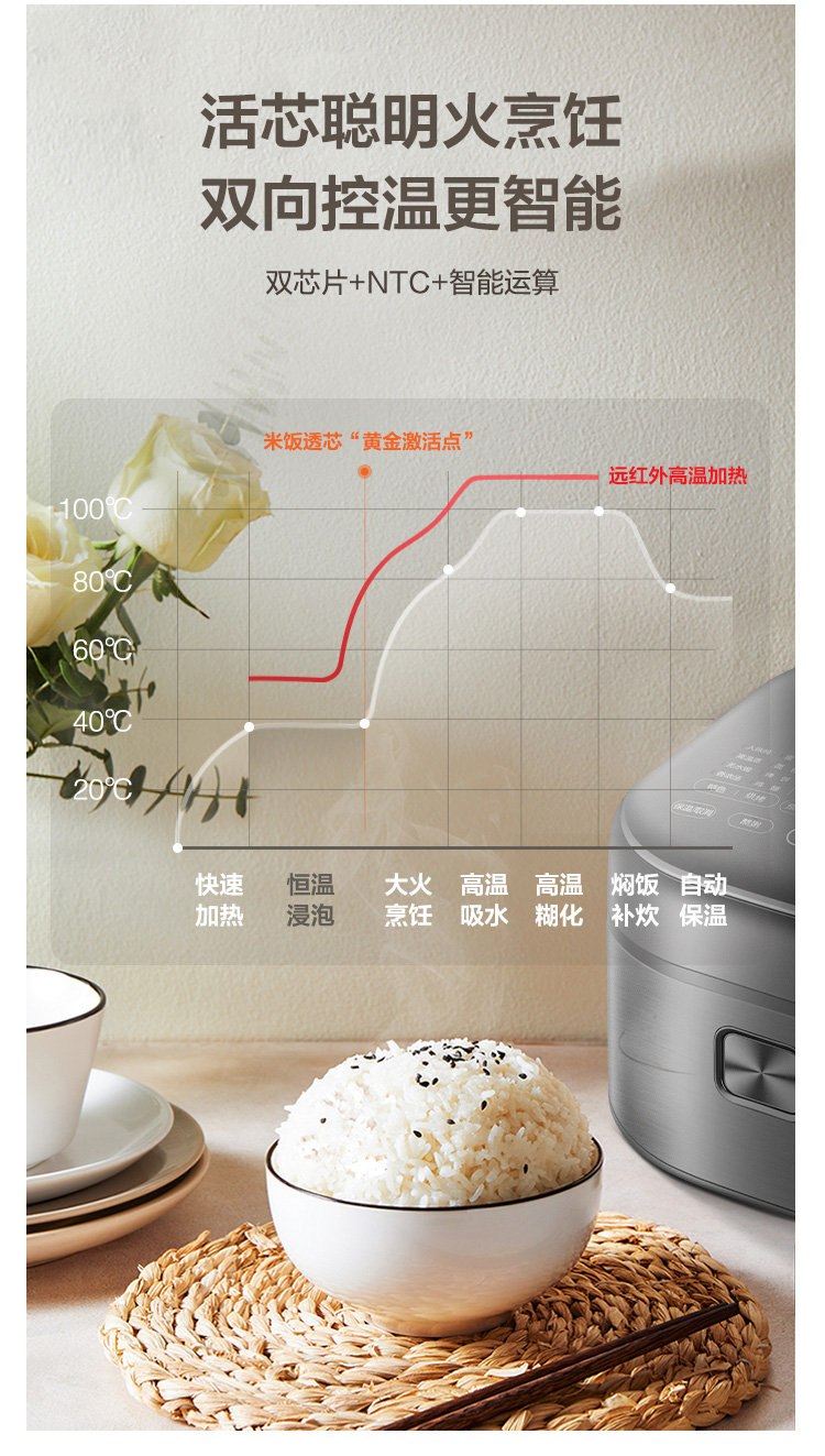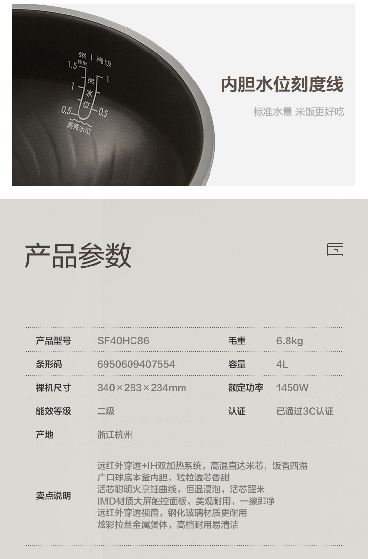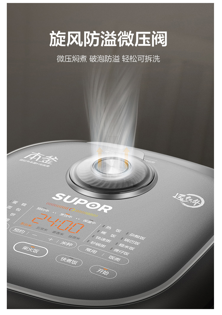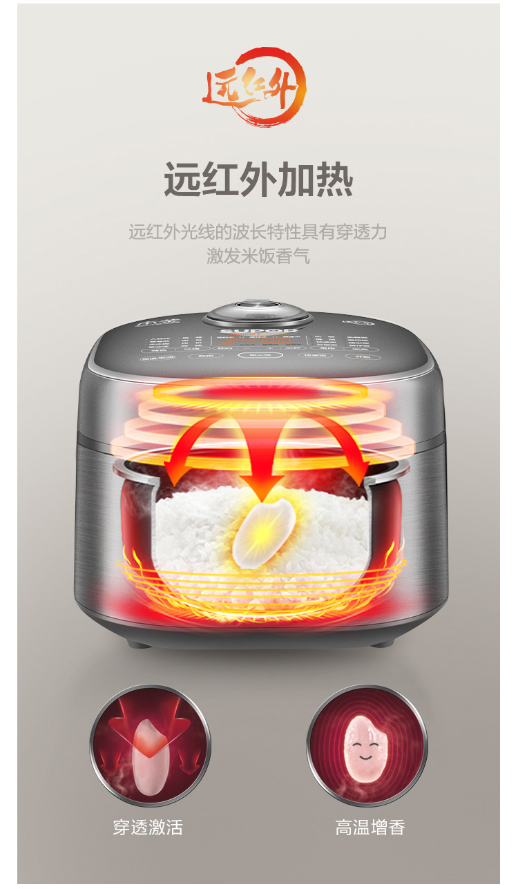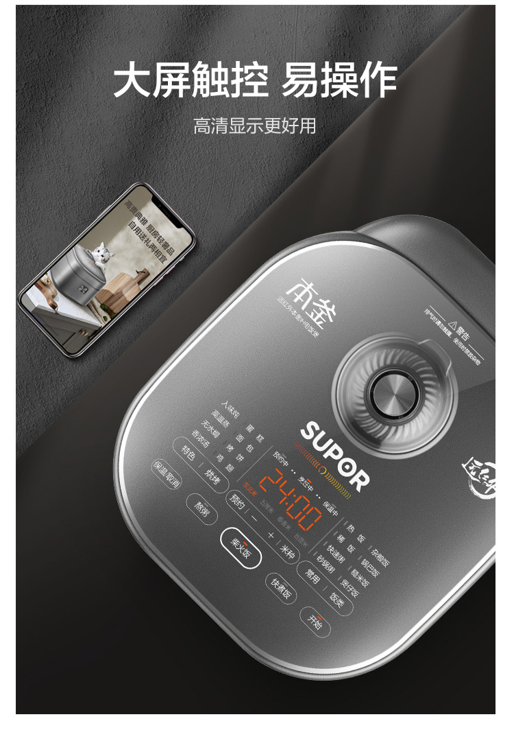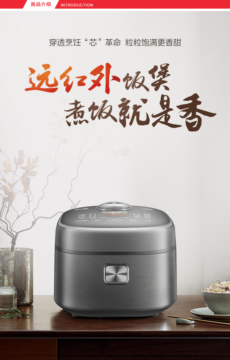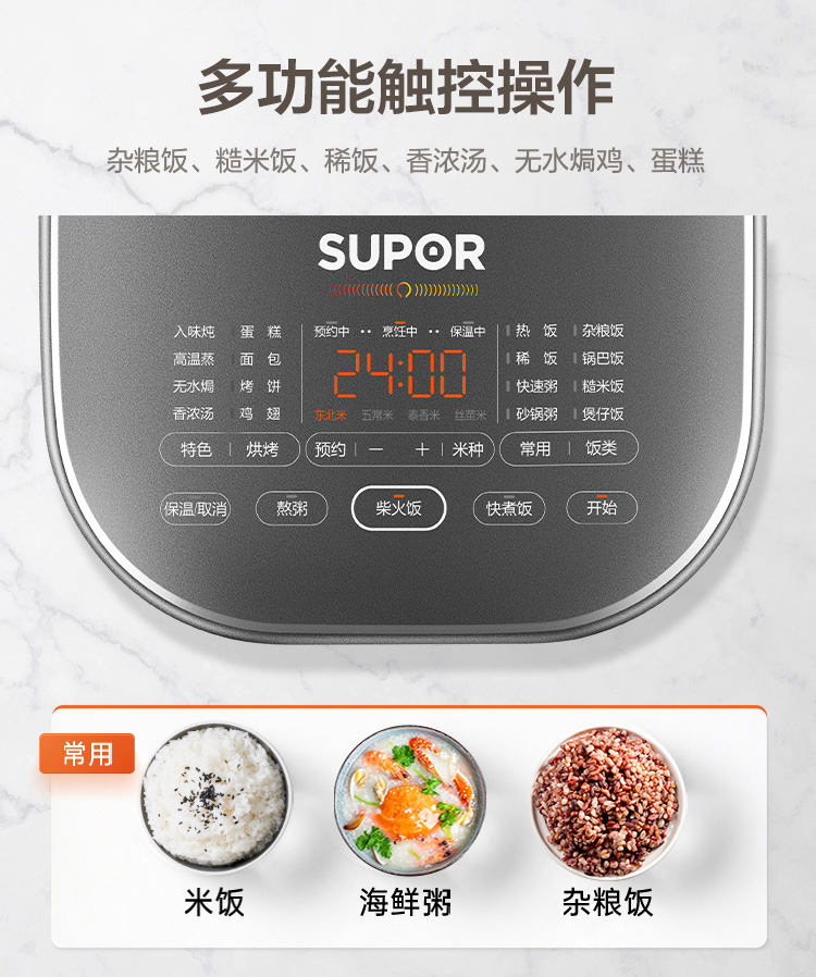 苏泊尔(SUPOR) 电饭煲 4L 远红外本釜IH电饭锅 多功能家用智能菜单 纯触控全面屏 深空灰色 SF40HC86