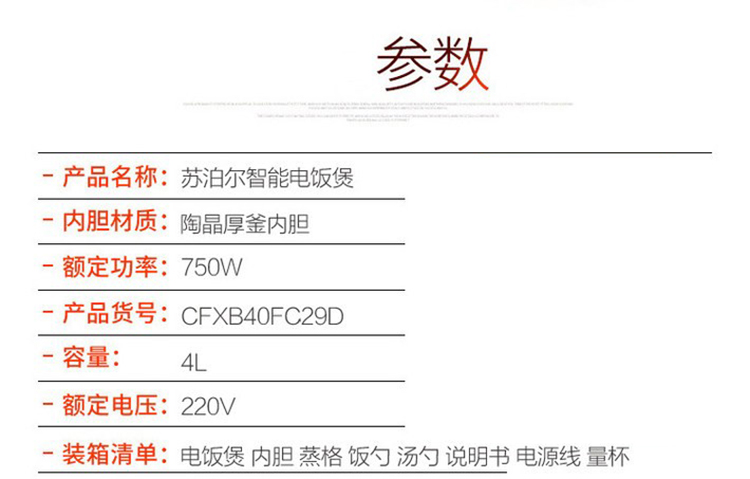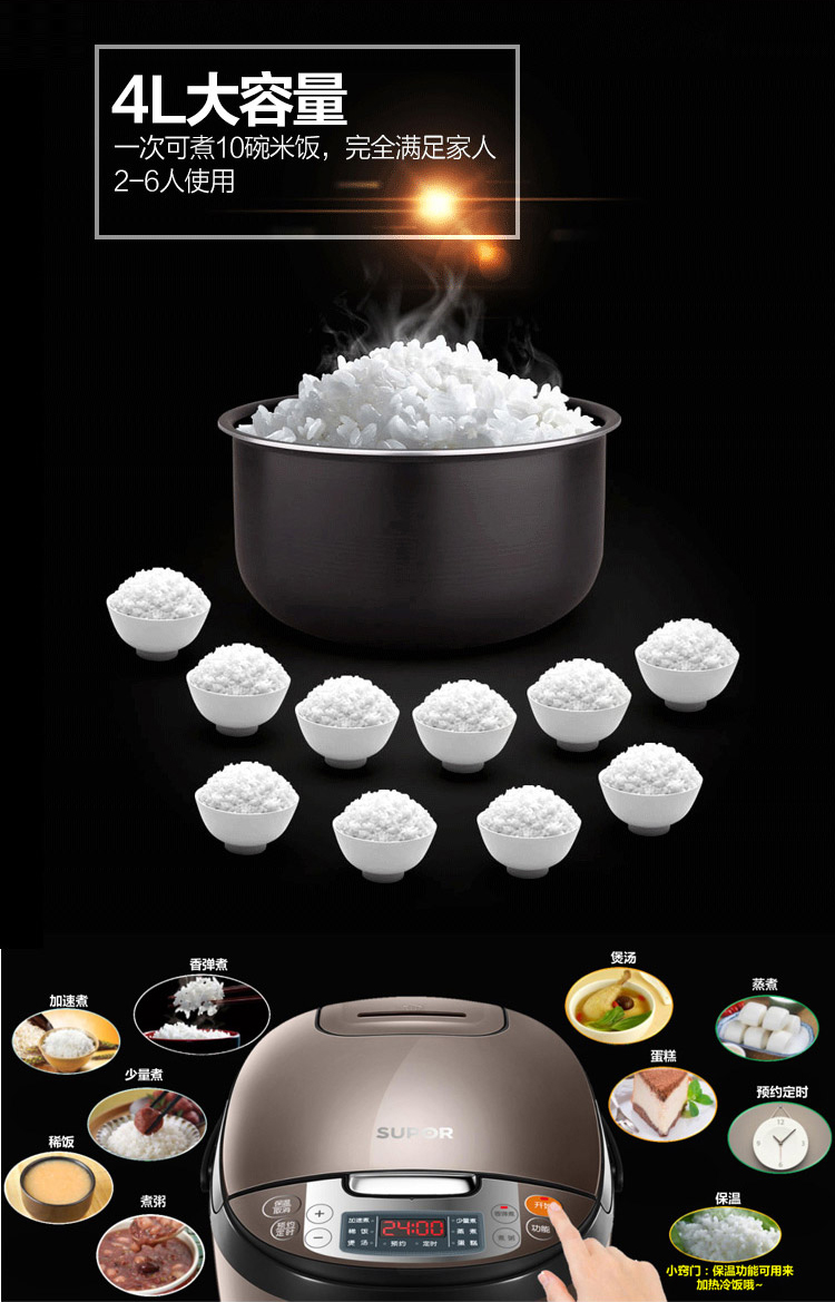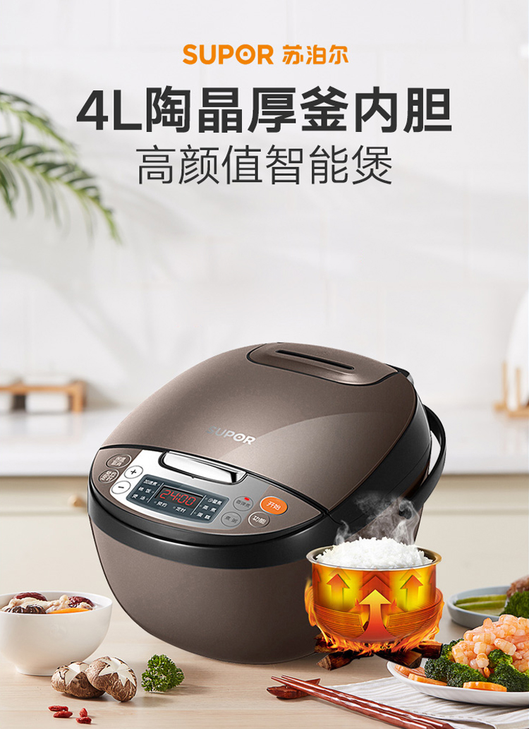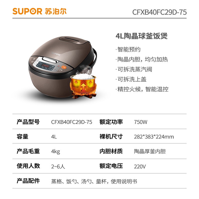 苏泊尔(SUPOR)CFXB40FC29D-75 电饭煲 4L家用陶晶厚釜 不粘内胆 微压焖香 可拆洗内盖电饭锅