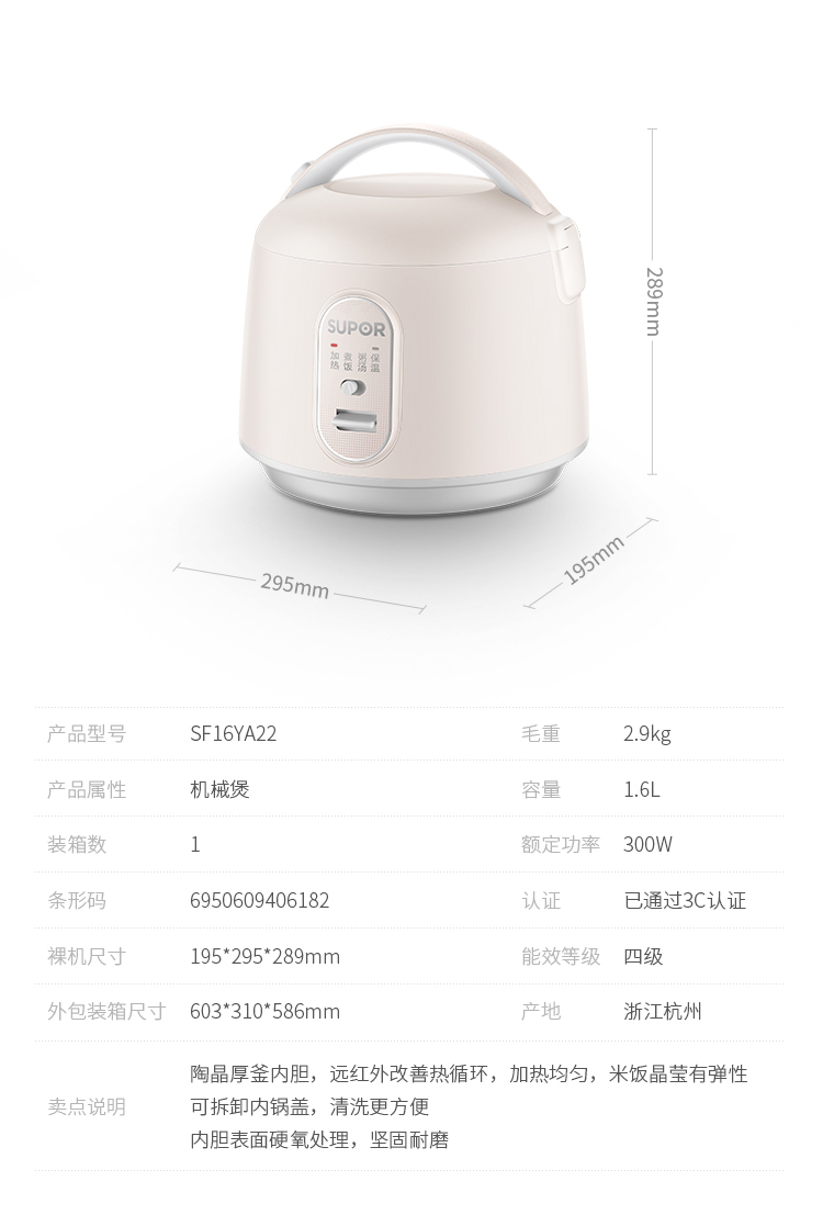 苏泊尔 SUPOR 电饭煲迷你1.6L学生宿舍机械电饭锅 SF16YA22
