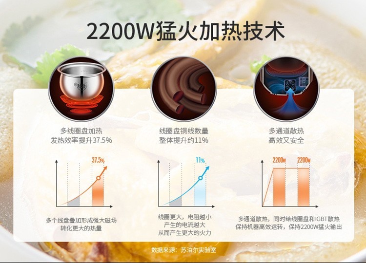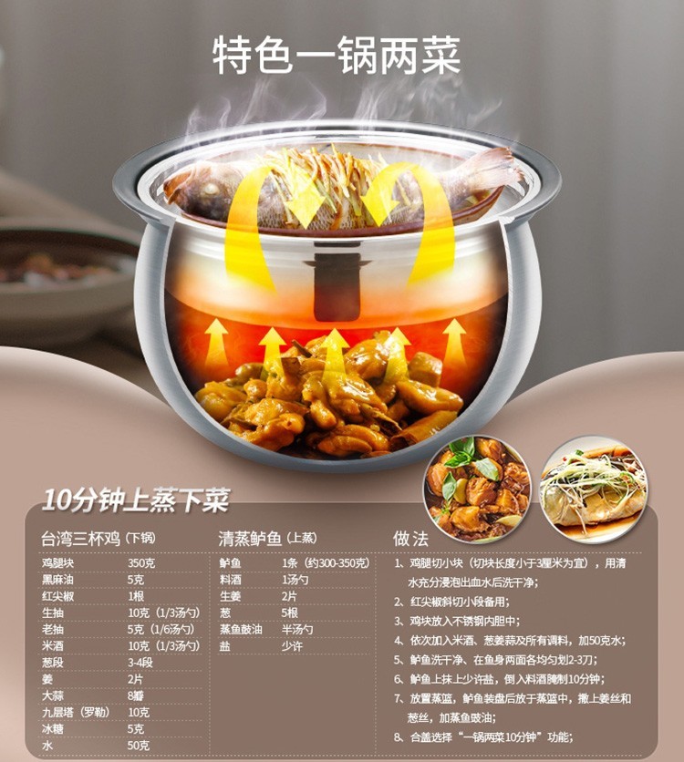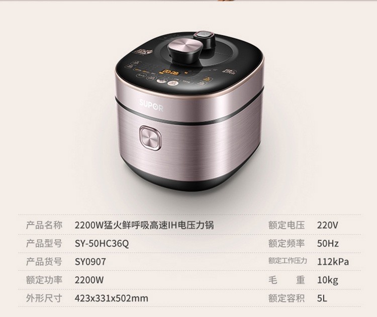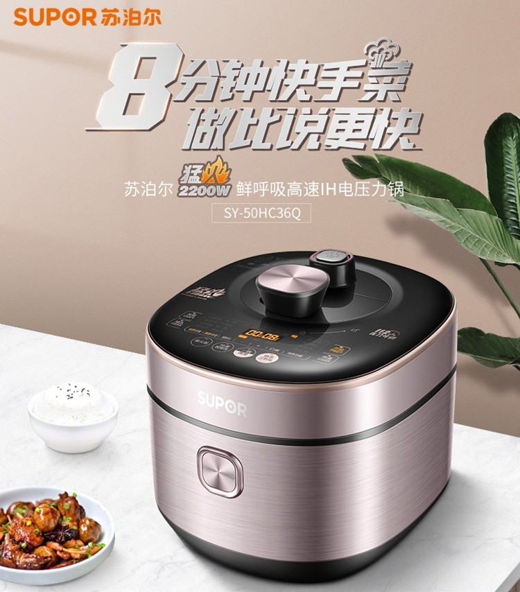 苏泊尔(SUPOR)电压力锅双胆5L精钢球釜家用智能高压高压煮饭煲汤SY-50HC36Q 5L