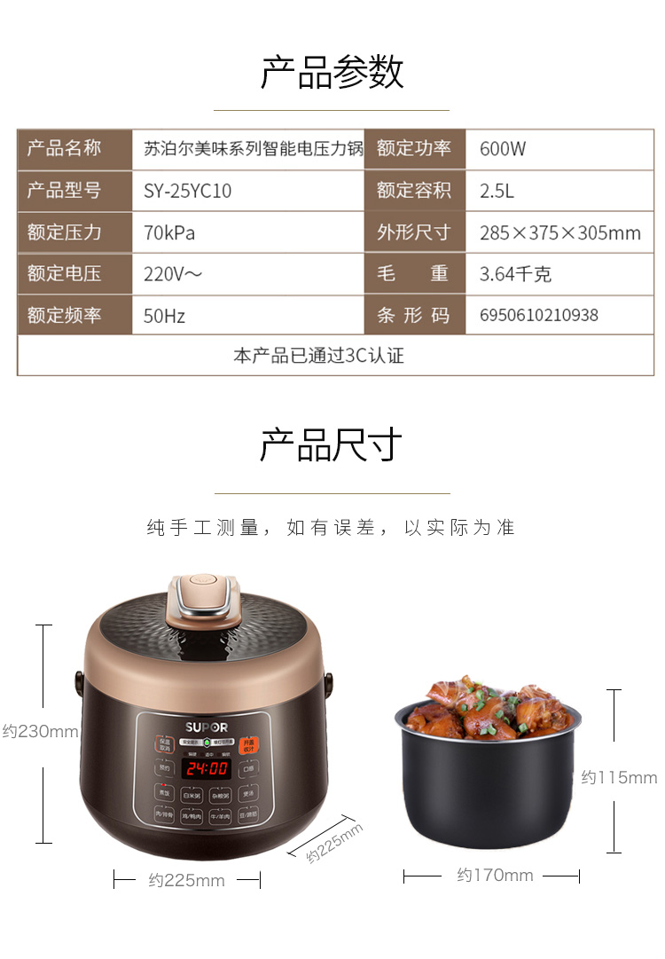 苏泊尔(SUPOR)电压力锅SY-25YC10 电高压锅迷你小容量家用1-2-3人电饭煲2.5L