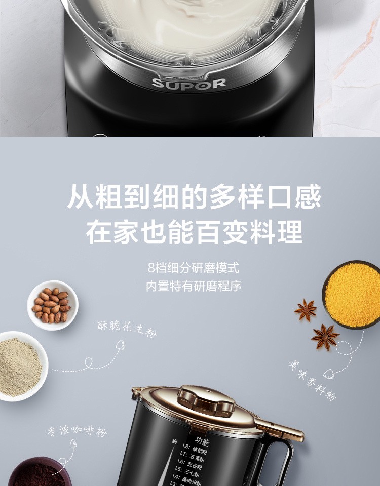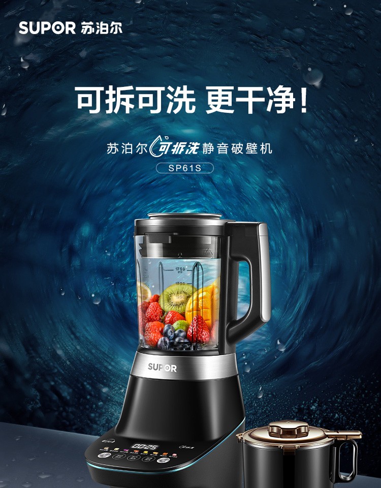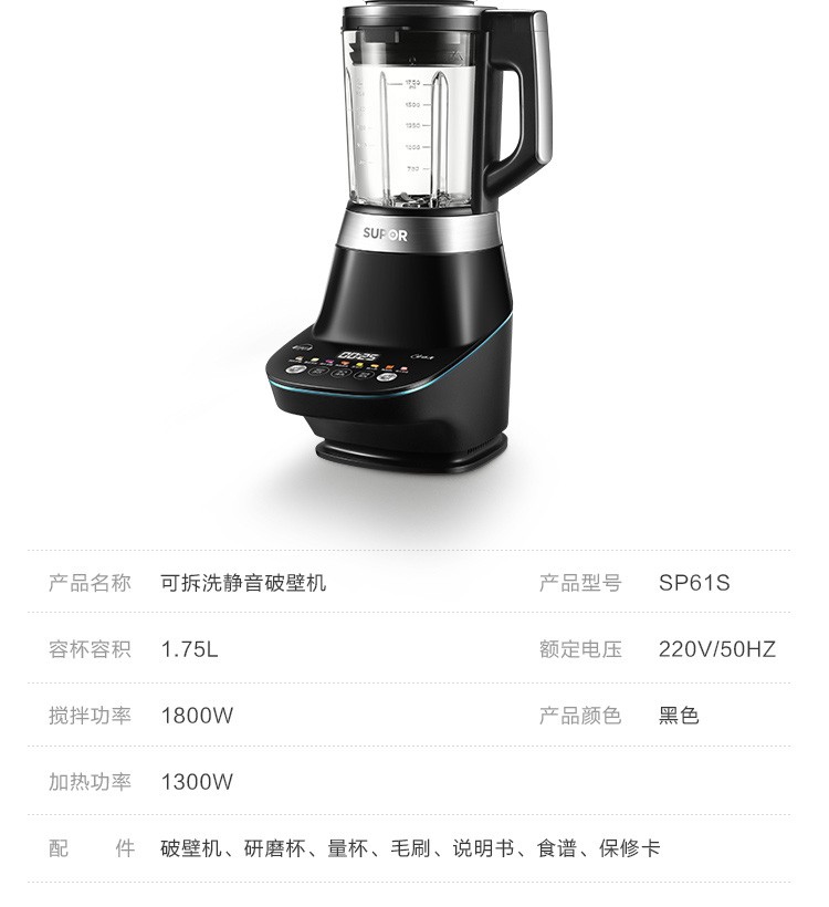 苏泊尔(SUPOR) SP61S 破壁机 可拆洗更干净可预约再加热 料理豆浆辅食