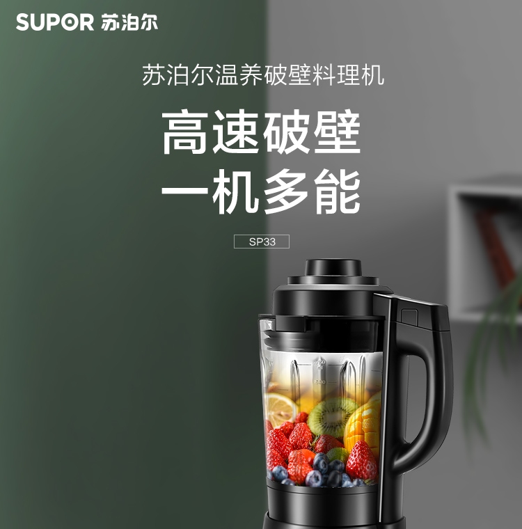 苏泊尔( SUPOR)破壁机多功能家用豆浆机加热破壁料理机搅拌机辅食机榨汁机绞肉机 SP33