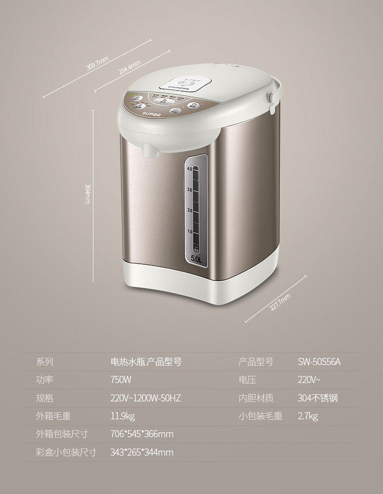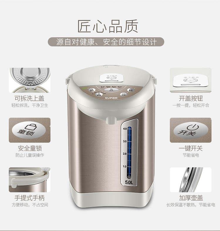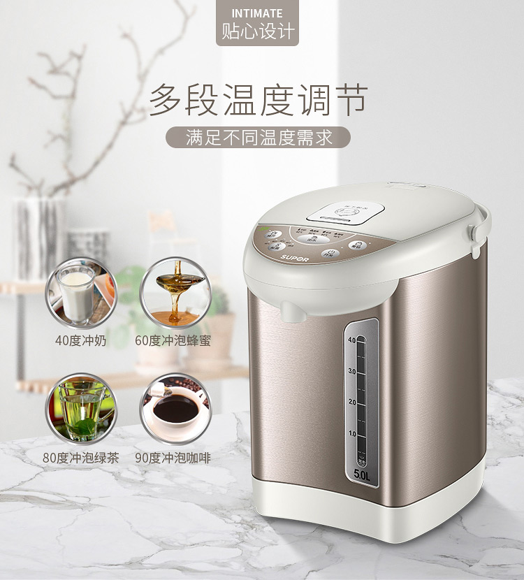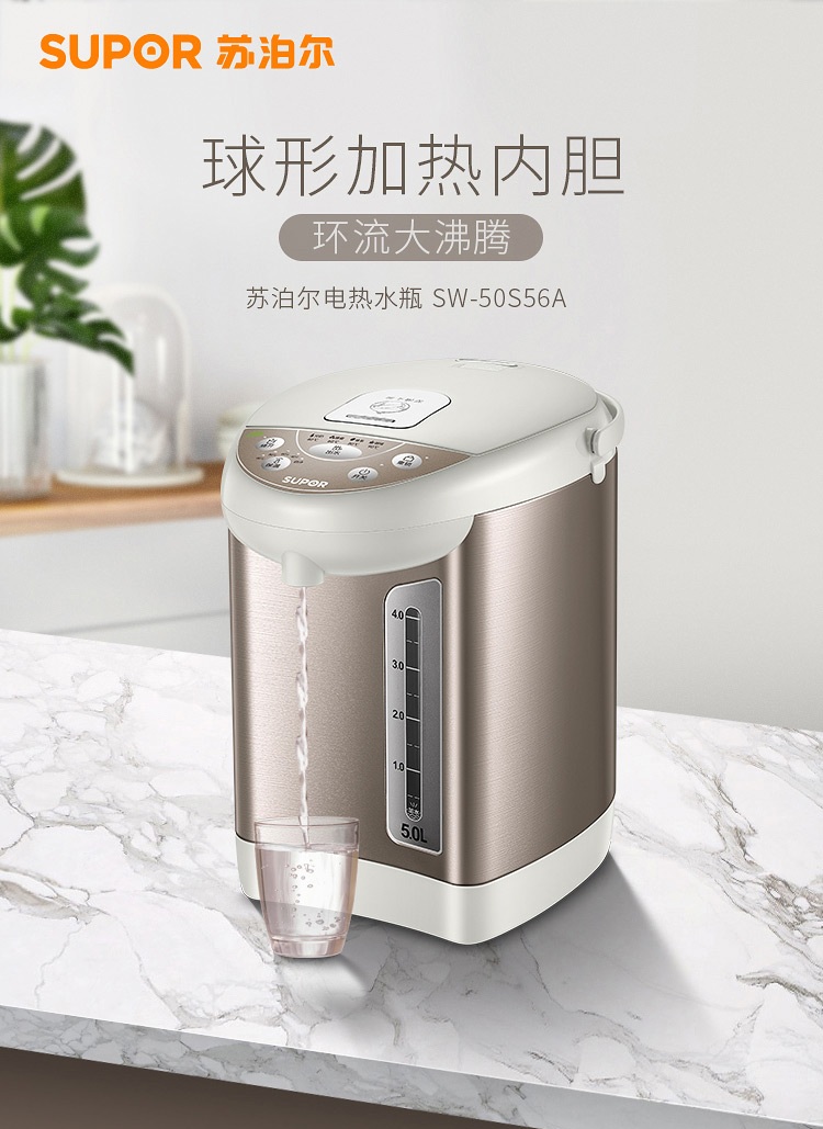 苏泊尔(SUPOR)电热水瓶 电热水壶烧水壶 5L容量 多段温控电水壶 双层防烫 304不锈钢开水壶 50S56A