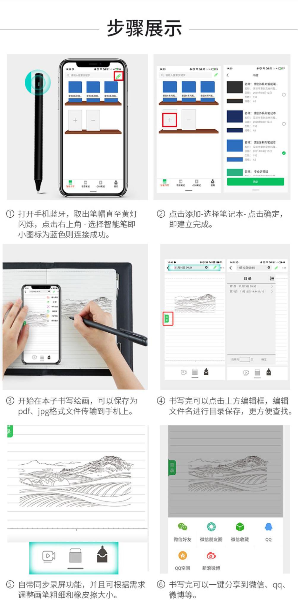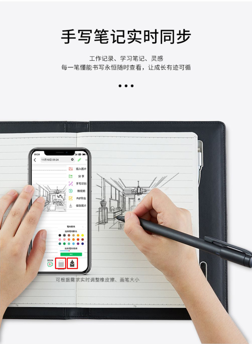 可以把写在纸上的文字即时同步到手机或多媒体终端并且即时分享到其他自媒体软件上