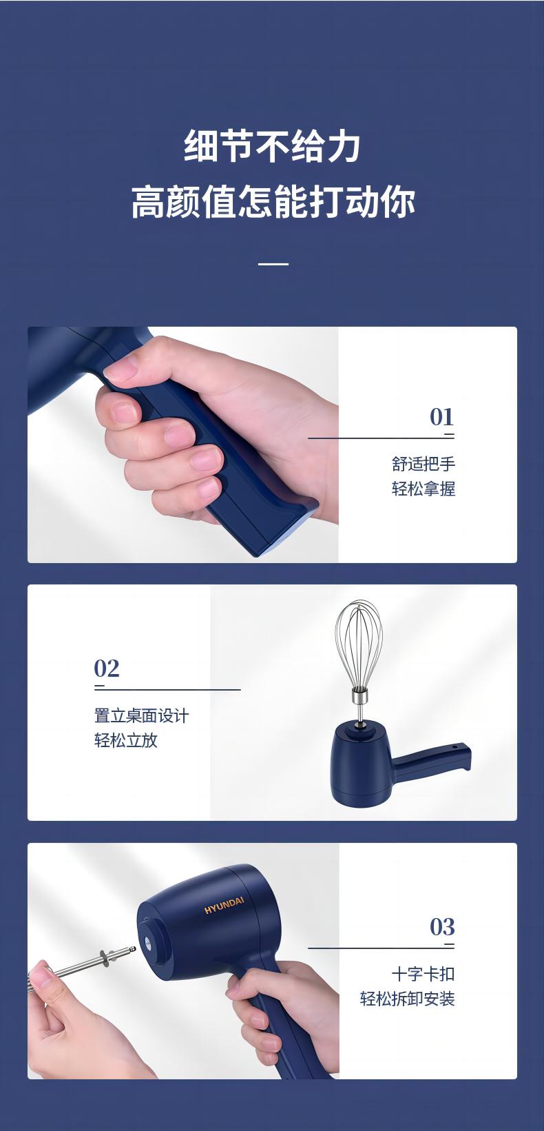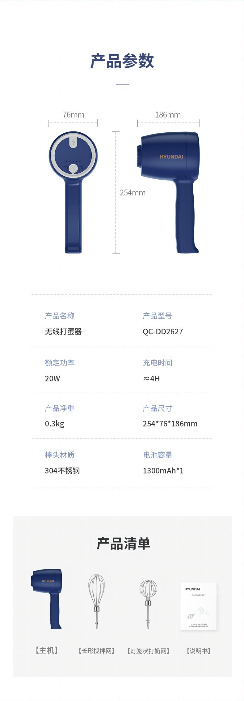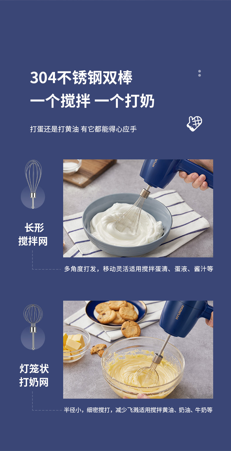 充满电可连续工作约12次(4个蛋清,每次约4分钟);人性化设计;无线使用,摆脱电源线约束,打蛋自由随你选;舒适把手:单手打搅不费力;双棒配置:长形搅拌网,灯笼状打奶网;304不锈钢双网;简单更换安装:1.网棒对准孔位插入 2.稍微用力一推听到“咔”一声,就装好了 3.使用后网棒拨出即可。