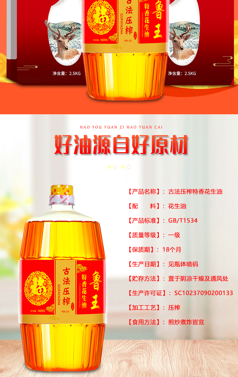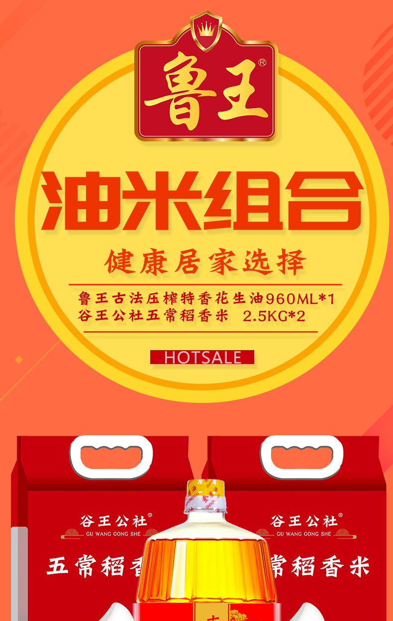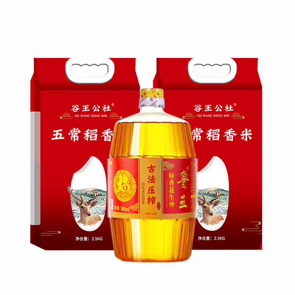 鲁王古法特香花生油960ml +谷王公社五常稻香米2.5kg*2