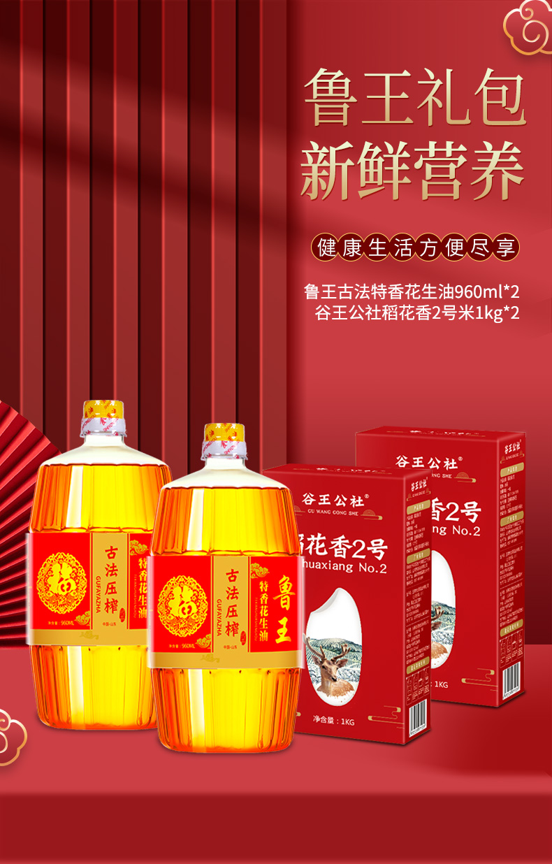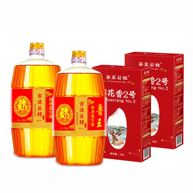 鲁王古法特香花生油960ml*2+谷王公社稻花香2号1kg*2