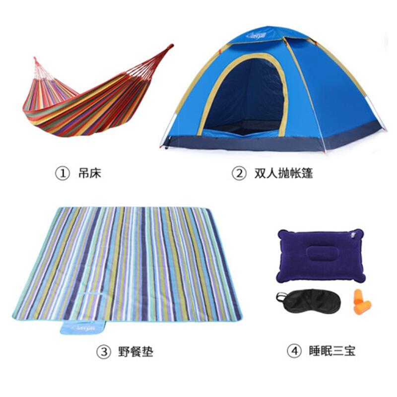 狼行者 速开全自动帐篷户外双人家庭套装LXZ-1052帐篷+LXZ-4004野餐垫+吊床+三宝