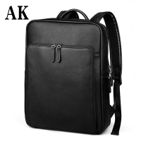 AK男包 双肩包男士真皮背包商务休闲书包韩版牛皮大容量旅行包多功能15.6寸电脑包