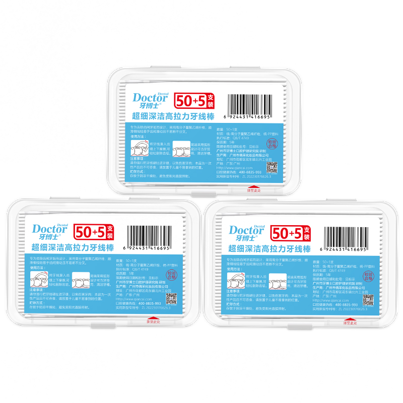 牙博士细滑圆线牙线棒55支*3盒清洁齿缝牙签牙线棒