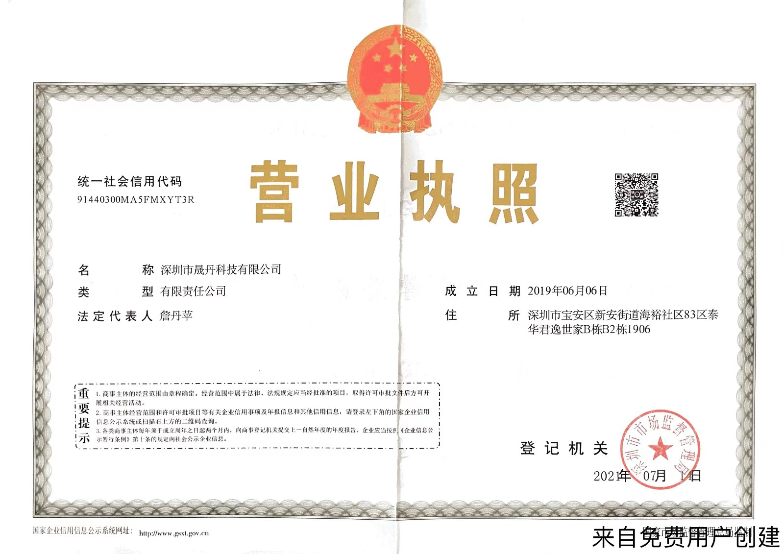 - 营业执照: