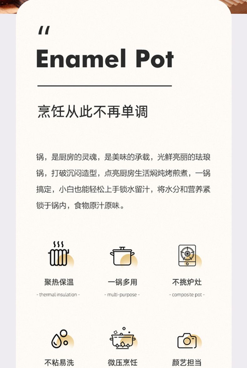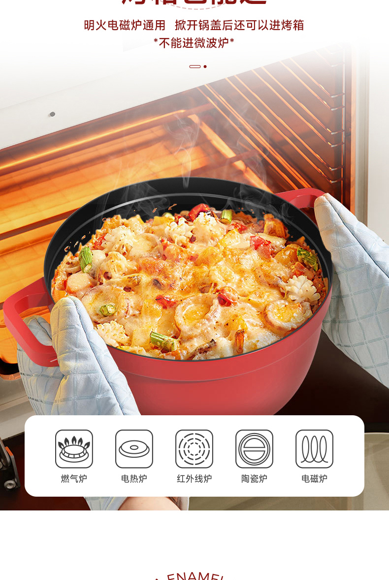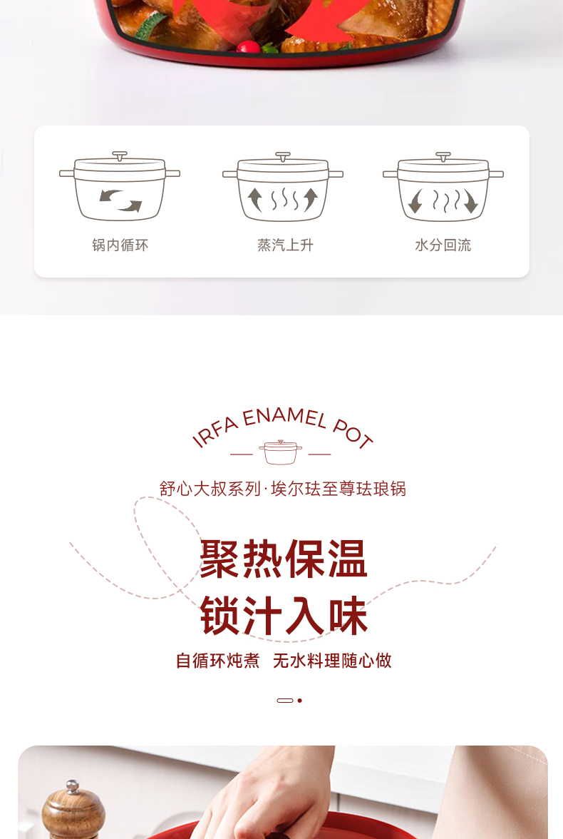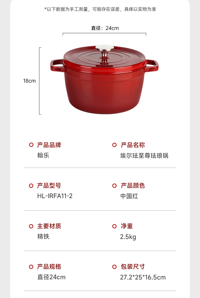 埃尔法至尊珐琅锅大容量双色可选,满足家庭日常所需,聚热保温锅内水分自循环,一锅多用,不挑炉灶,不粘易清洗,微压烹饪,直径约24cm,高度约18cm,精铁材质,2.5kg