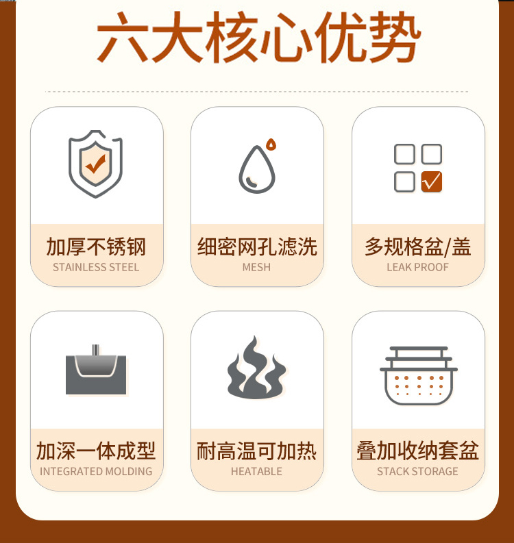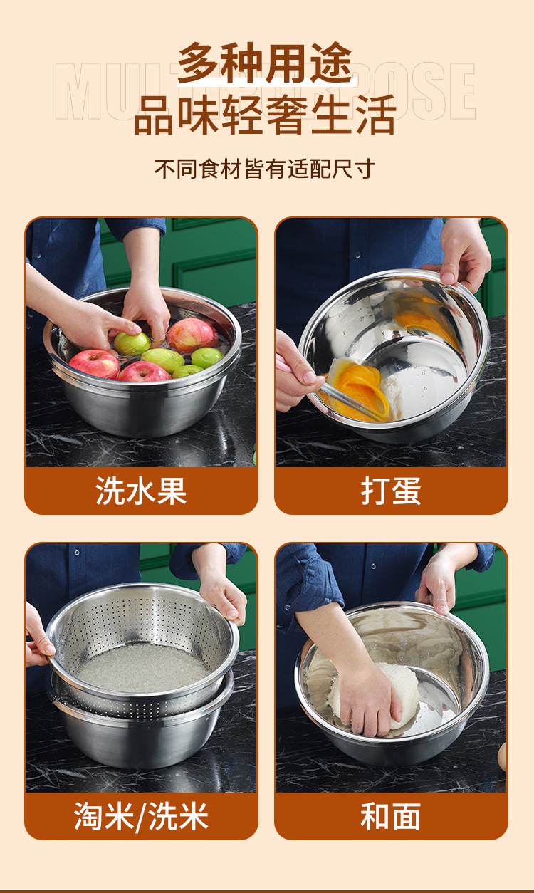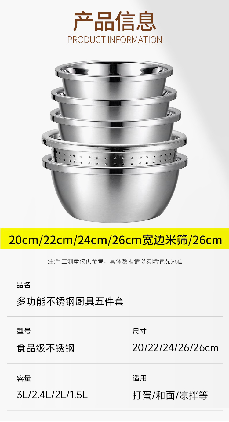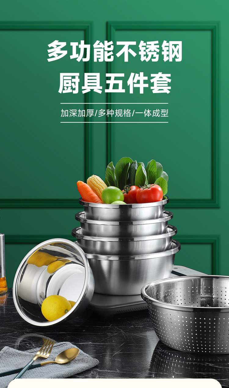 多功能不锈钢4盆1筛五件套
