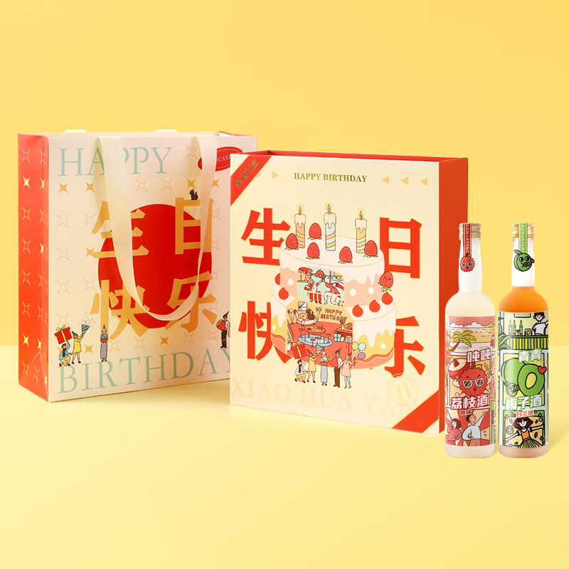 小花样生日快乐常规礼盒 258ml*2瓶 (青梅酒+荔枝酒)