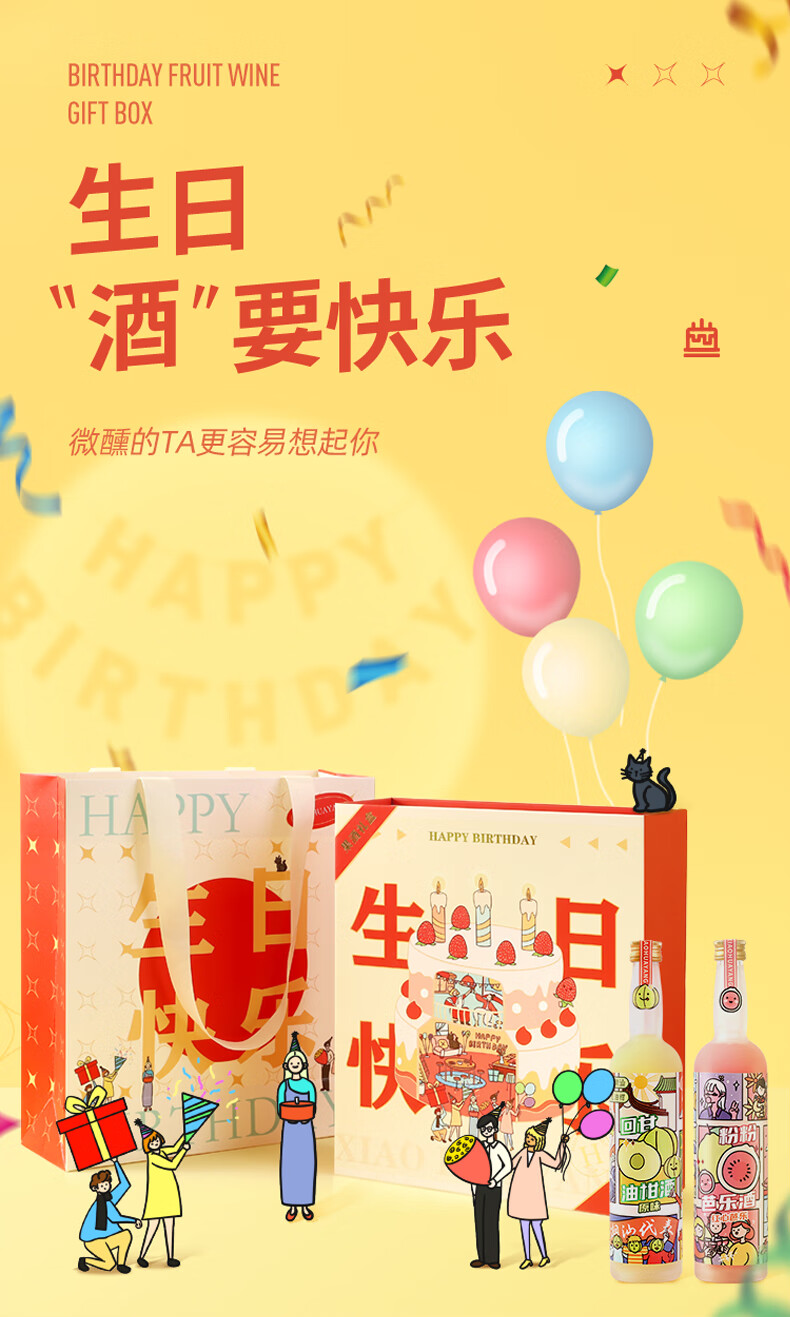 小花样生日快乐蛋糕灯光音乐礼盒258ml*2瓶 ( 芒果酒+芭乐酒)