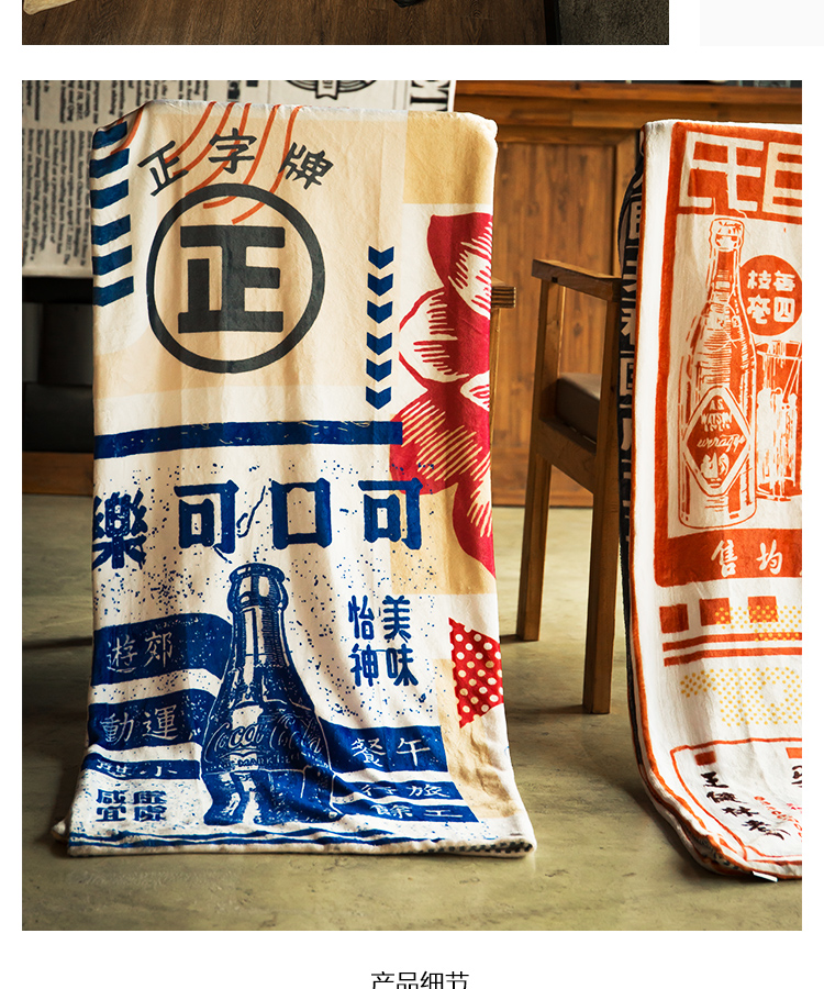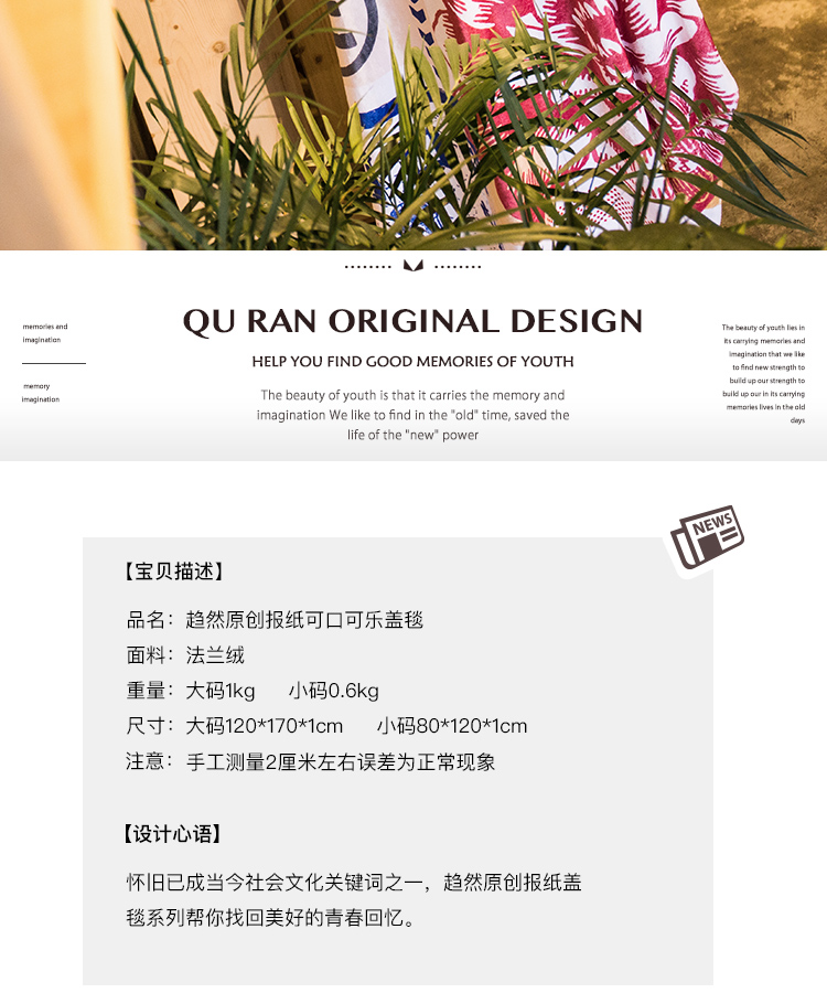 趋然(可口可乐)原创仿真报纸毛毯 夏季双层空调毯 办公室午休单人薄毛毯被子