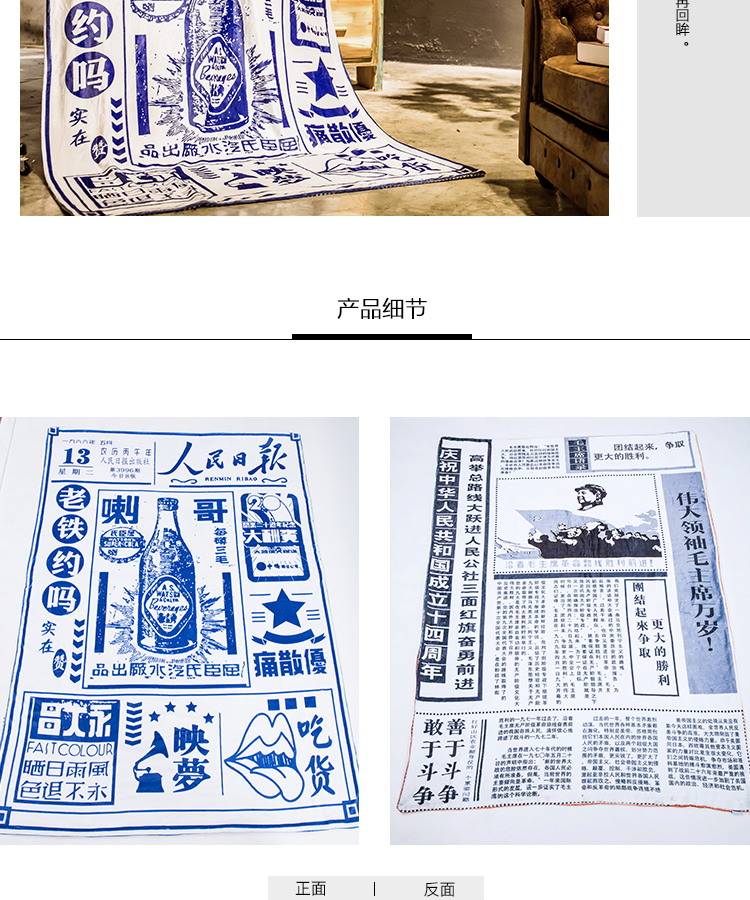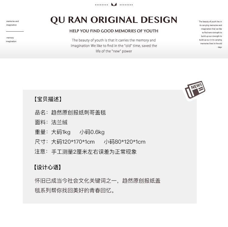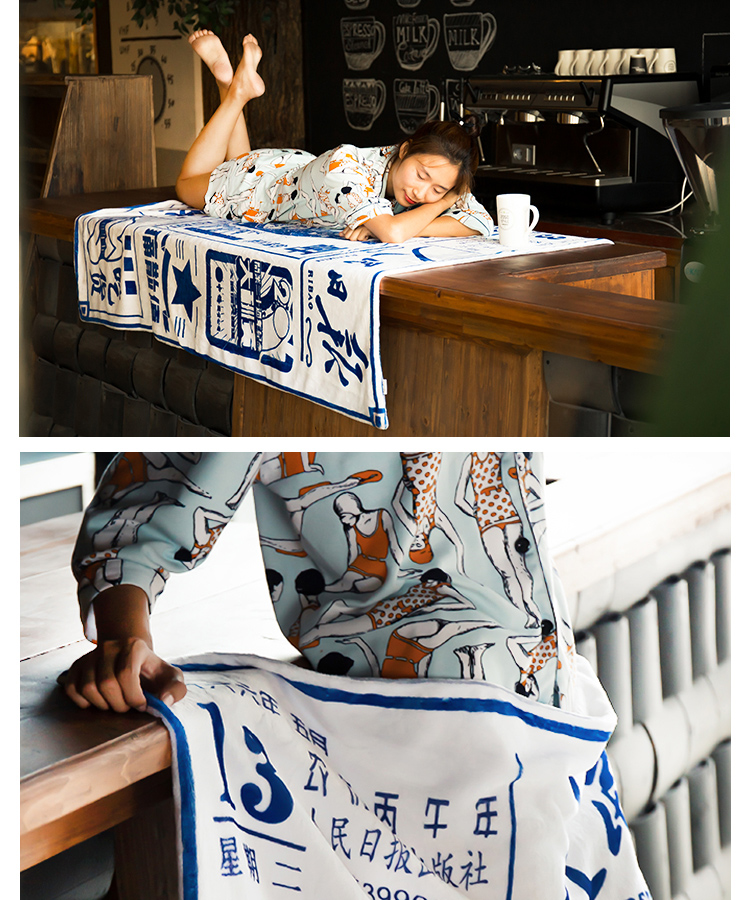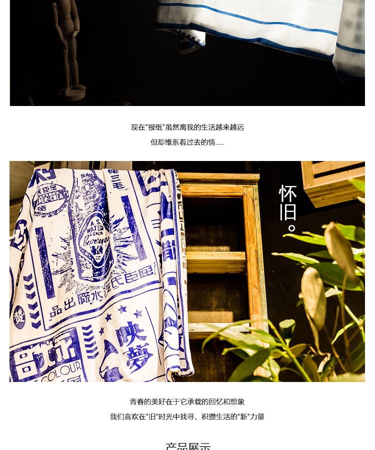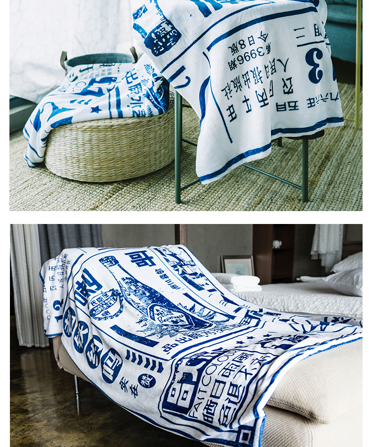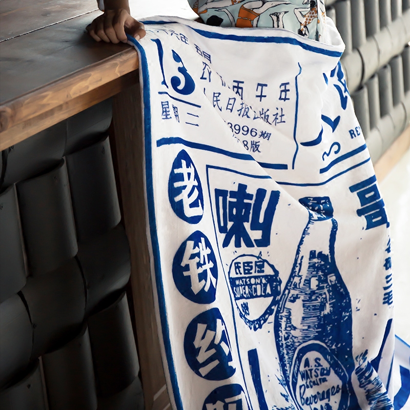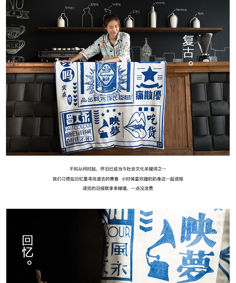 趋然(老铁约吗)原创仿真报纸毛毯夏季 双面双层不同印花法兰绒空调毯 单人被