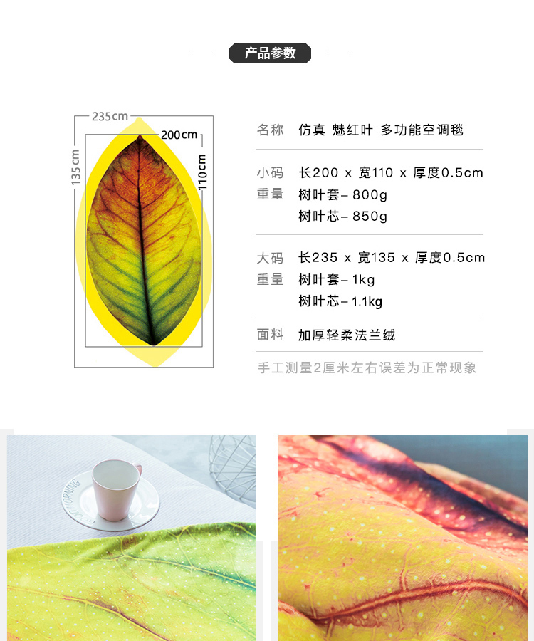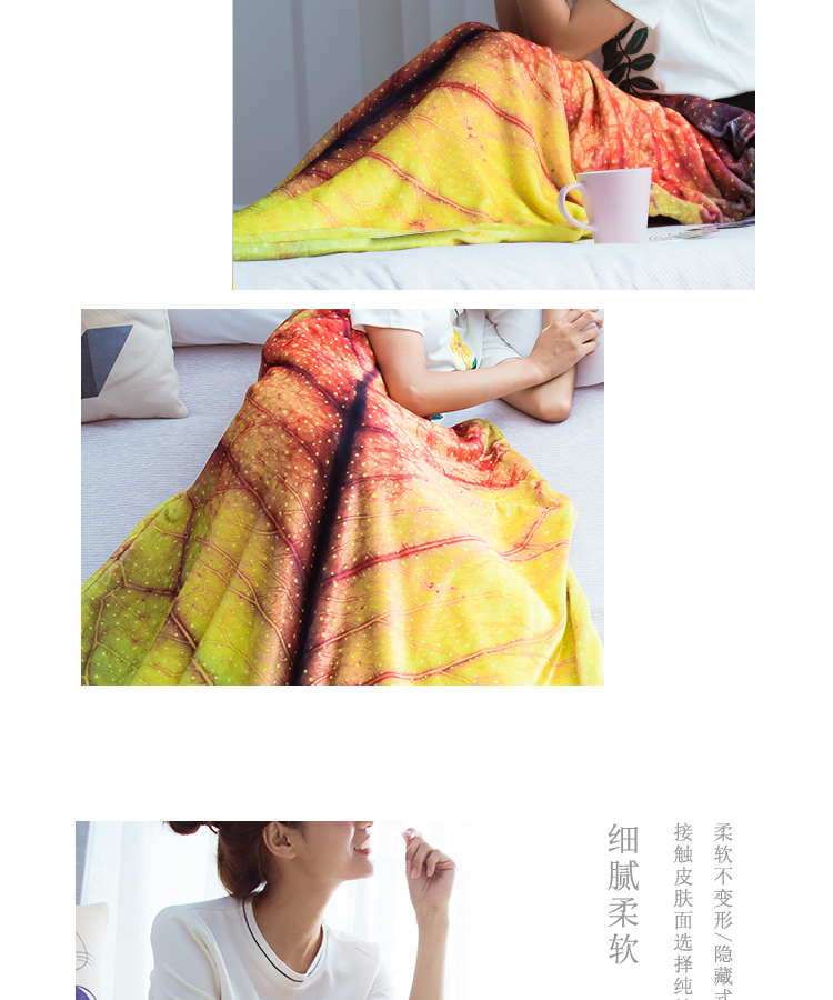 趋然(魅红叶)毛毯被子 加厚法兰绒印花魅红叶夏季空调毯 单人双人珊瑚绒毯