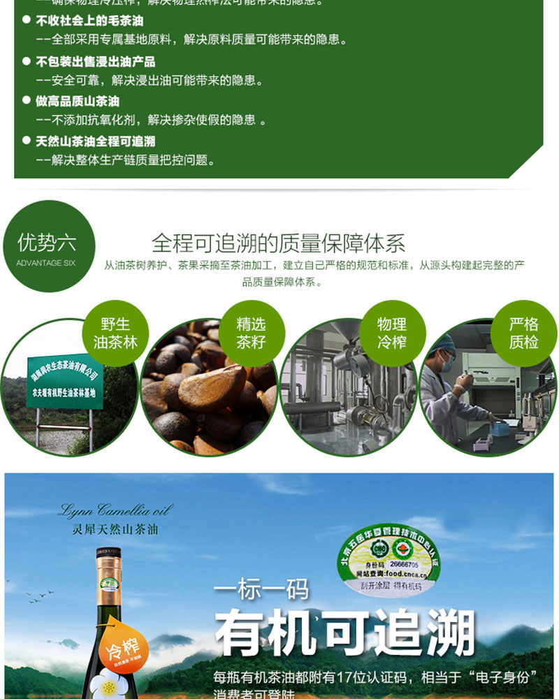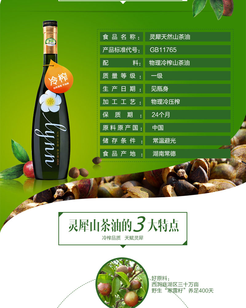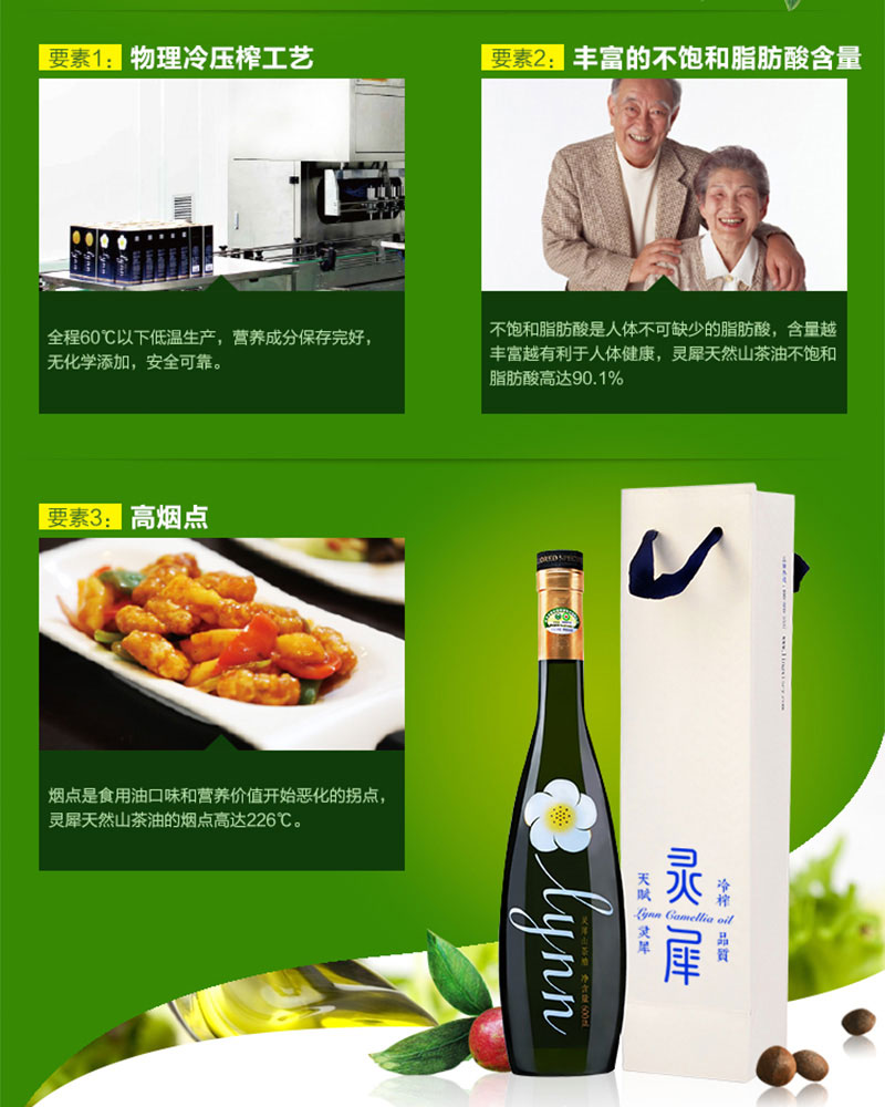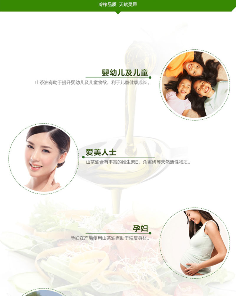 2.食用价值:长期食用山茶油可以预防三高,清理血管败坏细胞,在医学界山茶油被称为”血管清道夫“。还有“月子油”、“脑黄金”、 “长寿油”等之称。