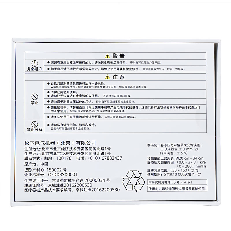 商品名称:松下 电子血压计 EW3106 白色