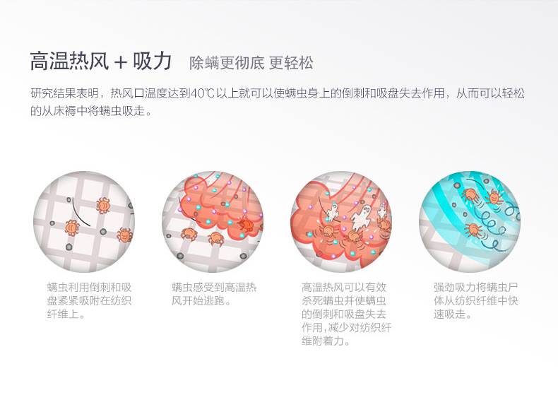 强劲吸力 高温除螨 热敷除湿 除螨杀菌