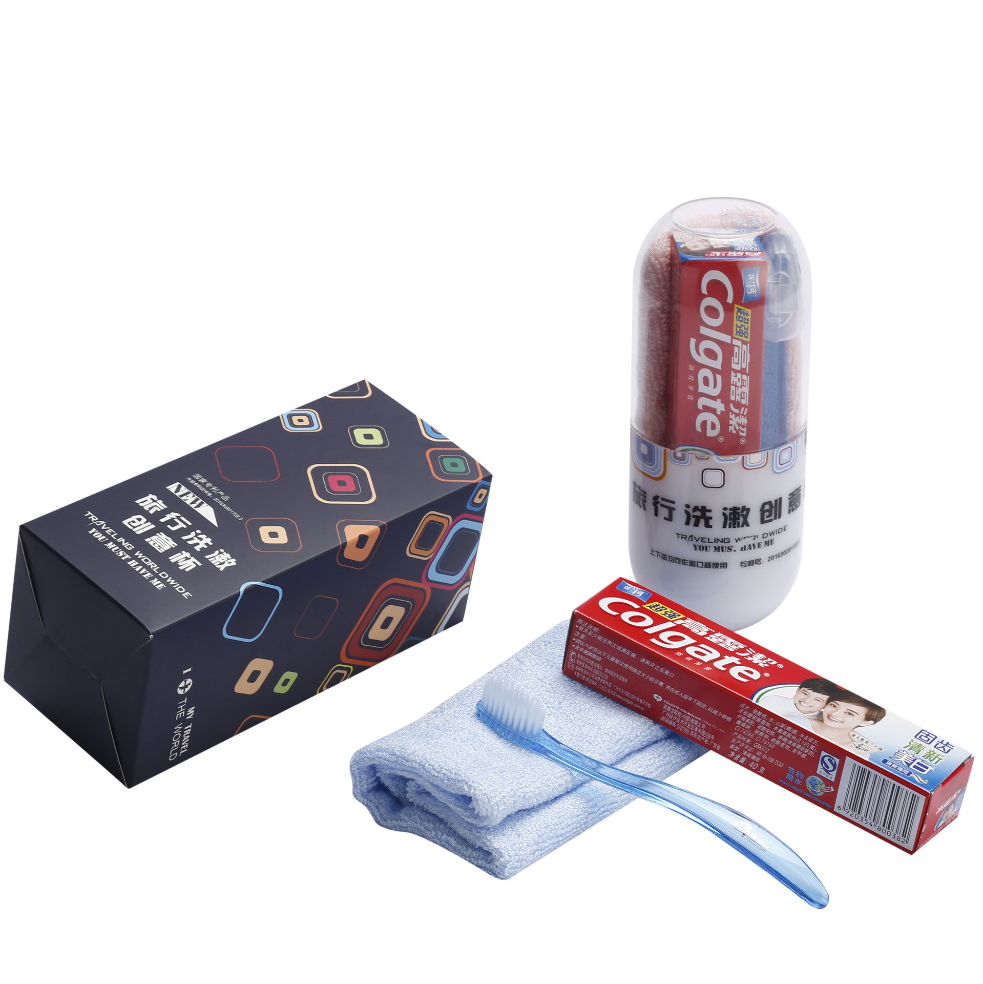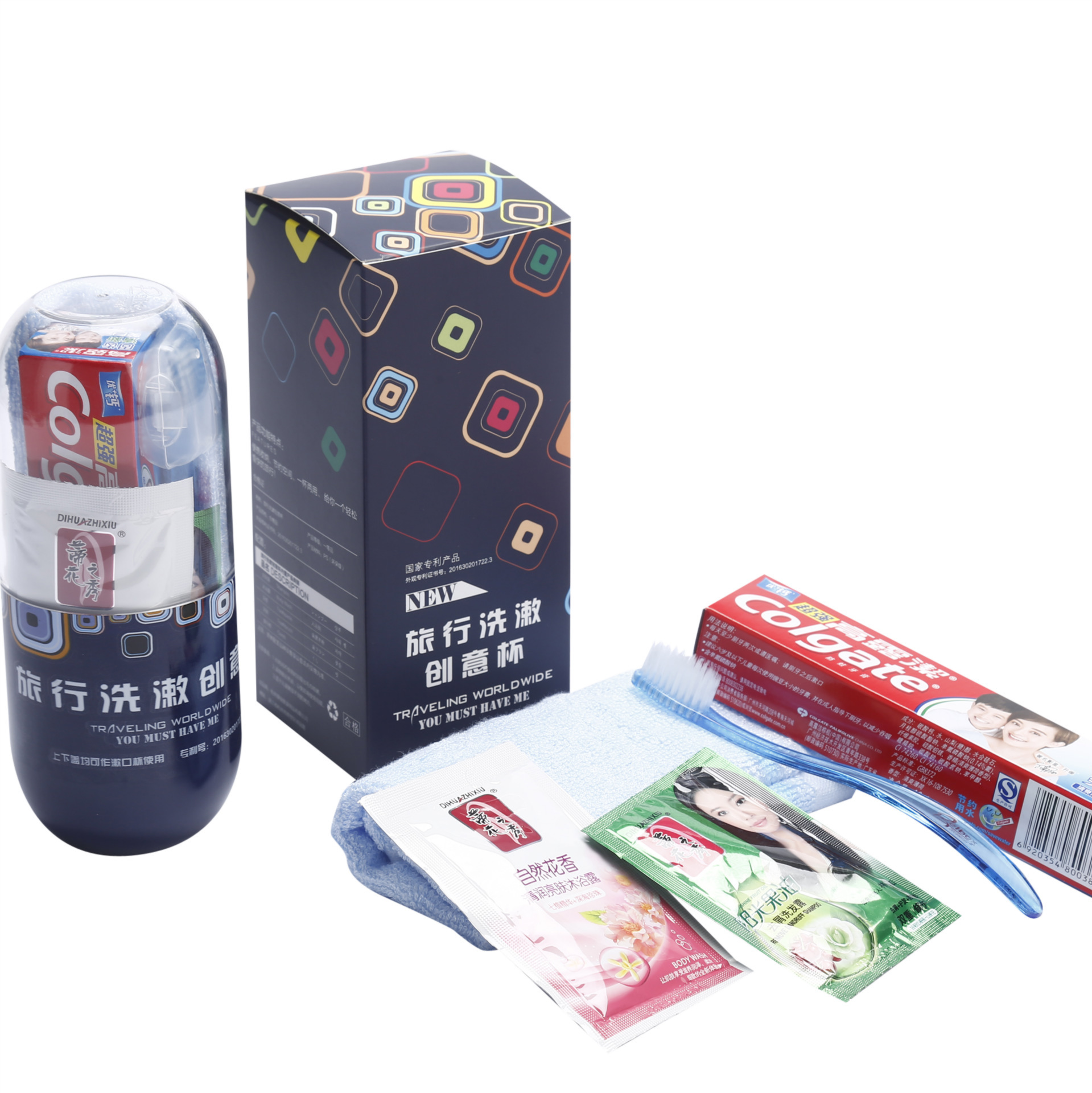 洗发水+沐浴露+牙膏30g +小牙刷 +毛巾+两用漱口杯