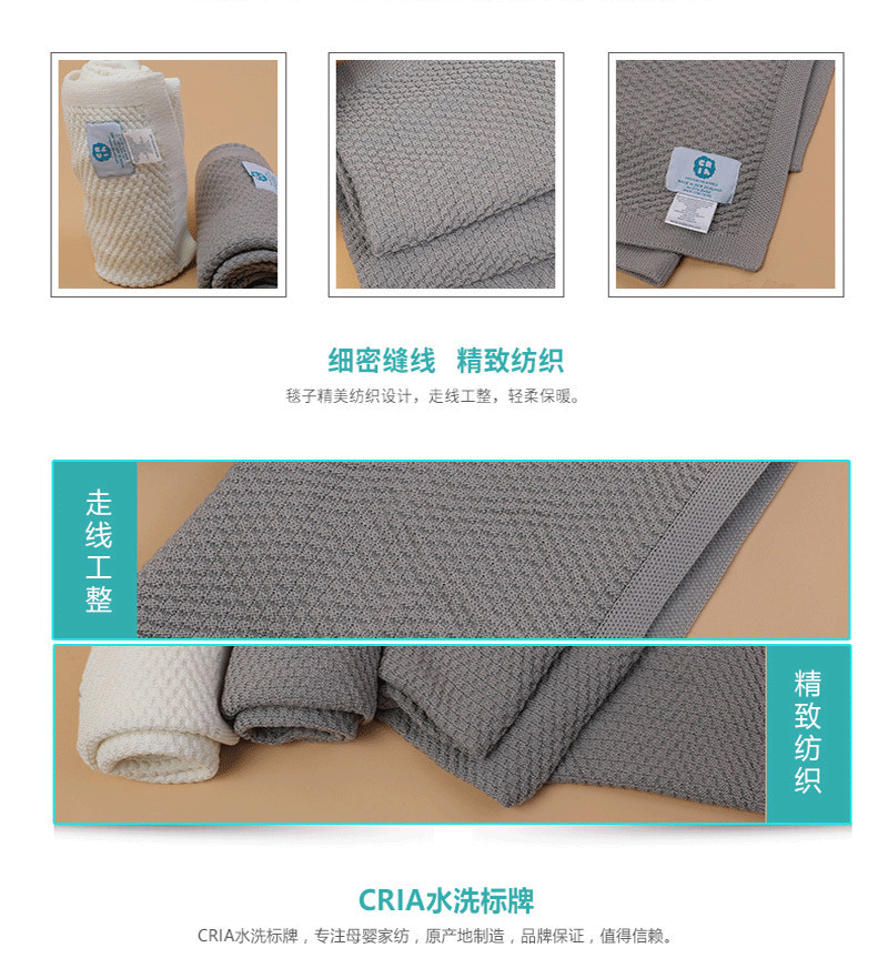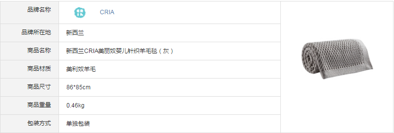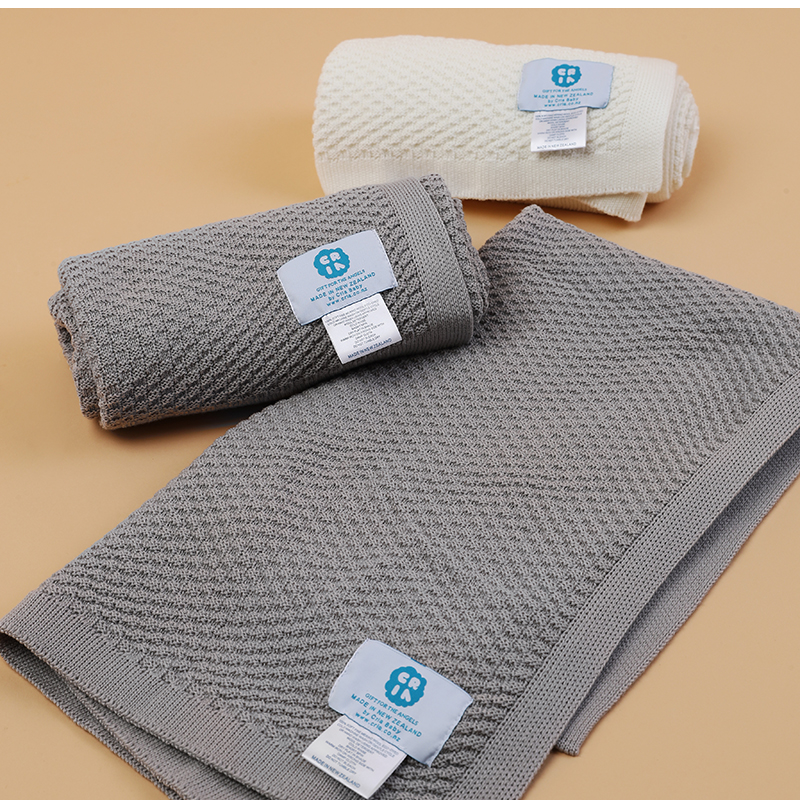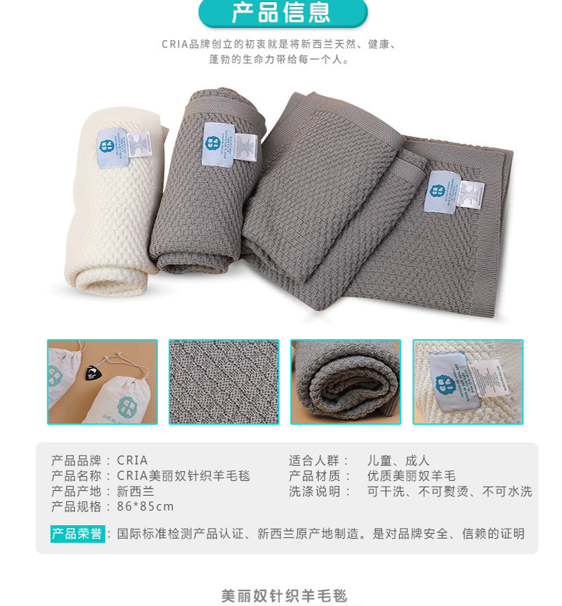 新西兰原产CRIA美丽奴羊毛针织婴儿毯羊毛盖毯灰色
