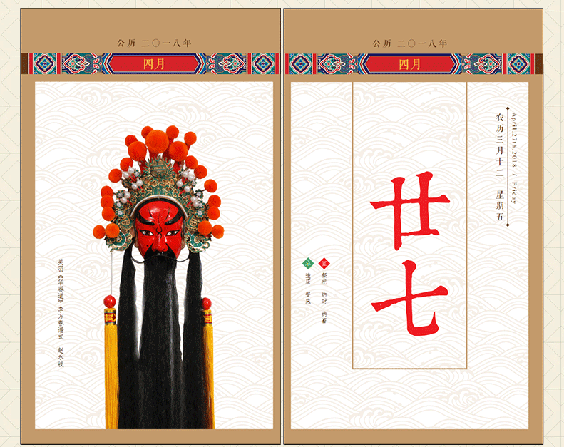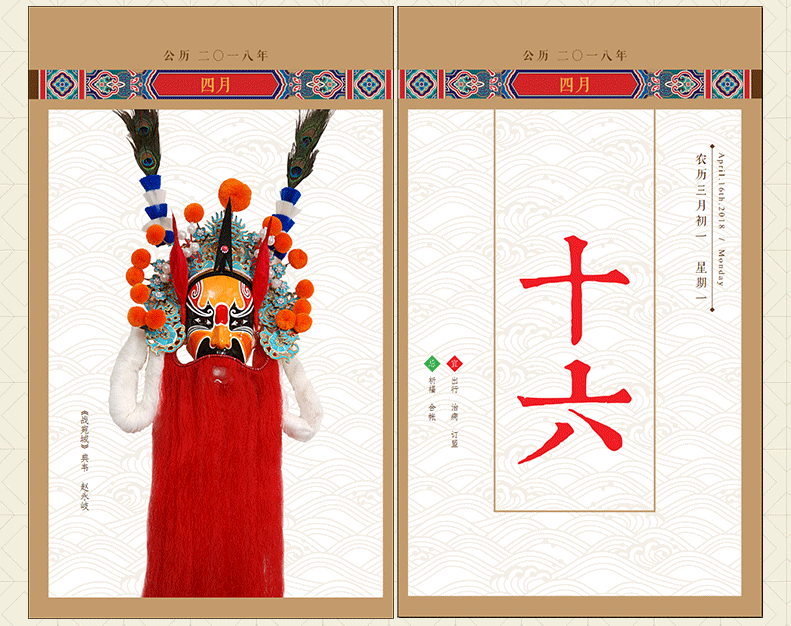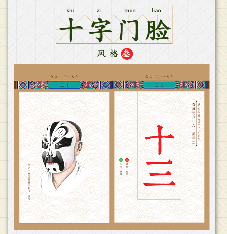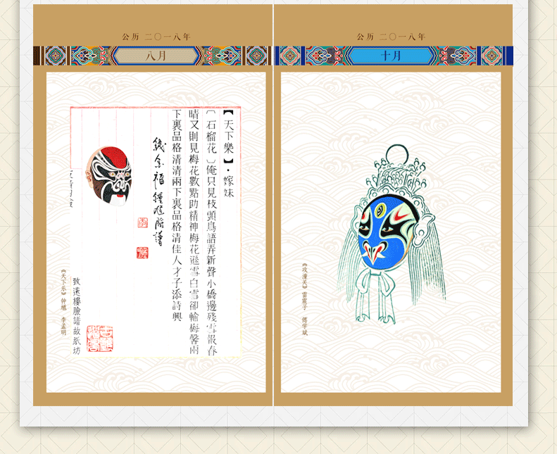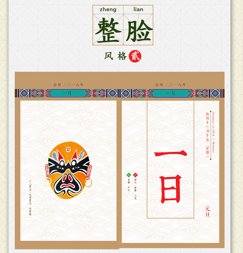 粉墨丹青 2018狗年日历京剧戏曲脸谱绘画台历艺术家作品