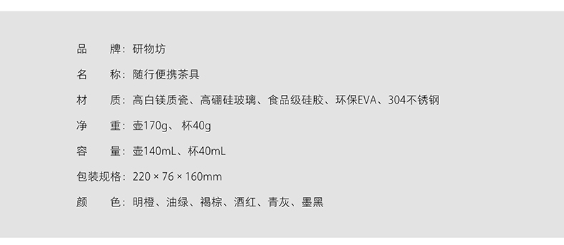 容  积:玻璃壶140ml ,陶瓷杯子:40 ml