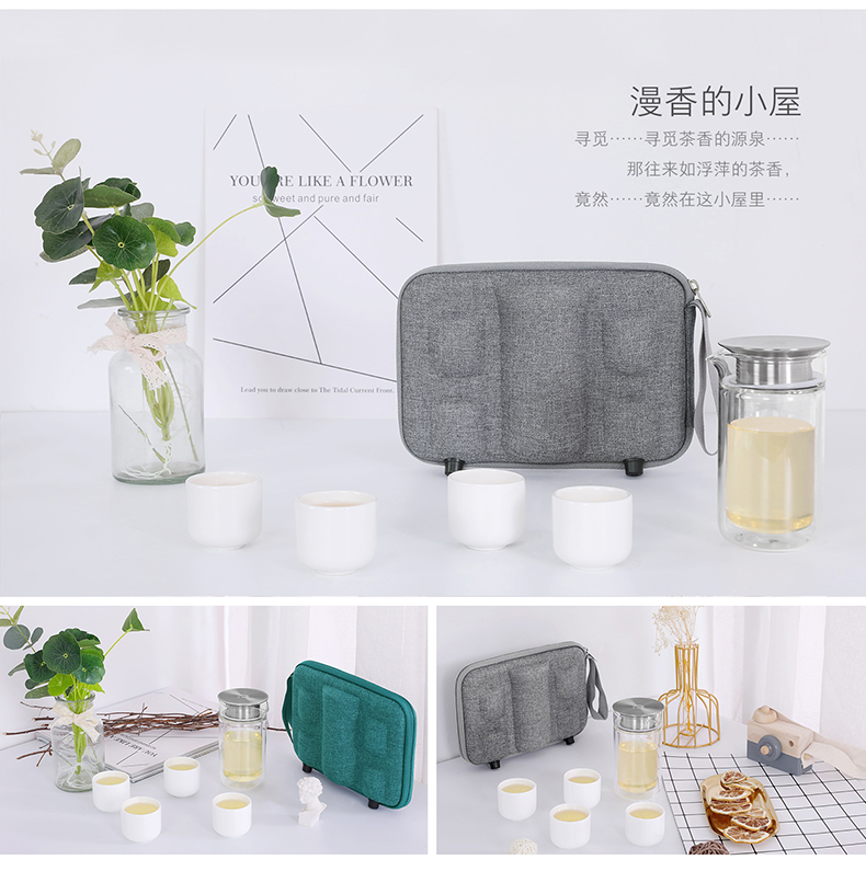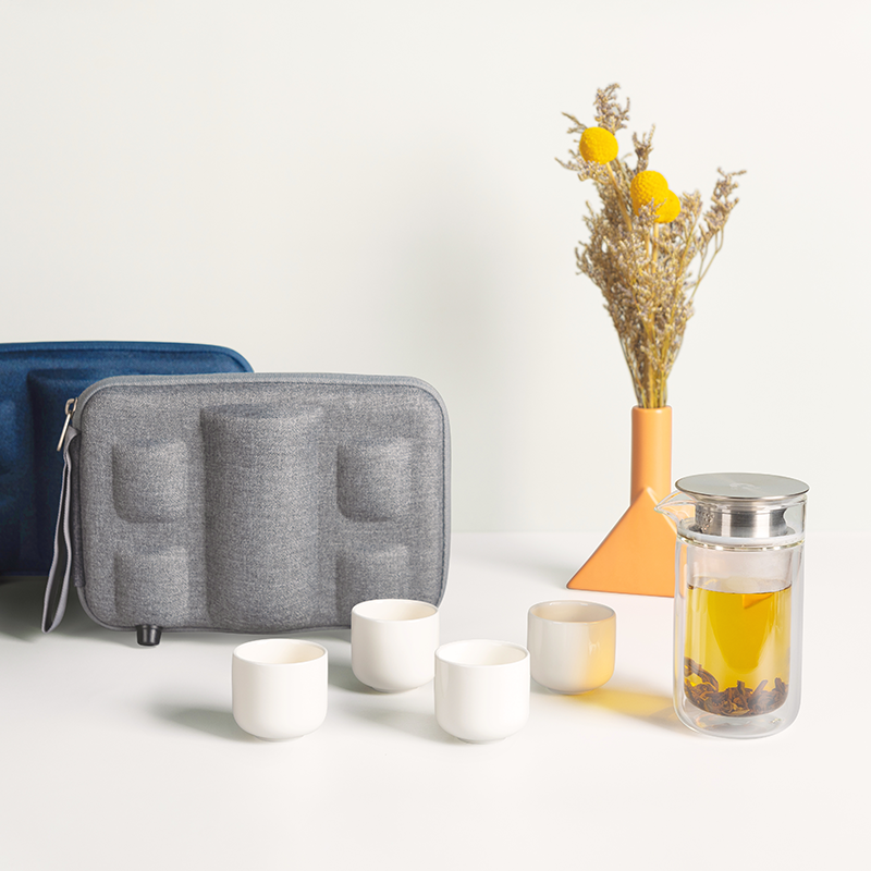 研物坊随行创意旅行茶具小清新户外套装便携包一壶四杯送礼佳品