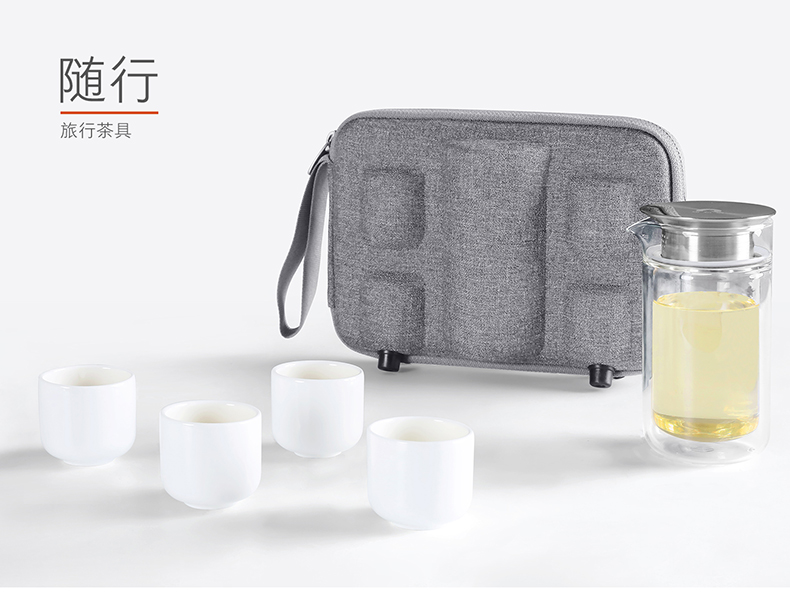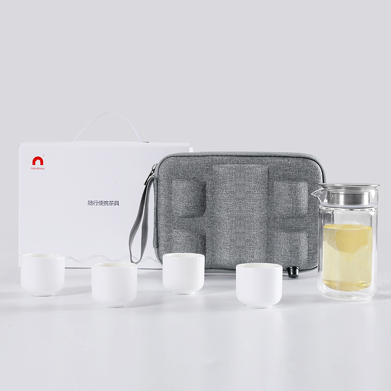 配置参数:彩盒X1, 便携旅行包X1,玻璃茶壶X1, 陶瓷杯X4