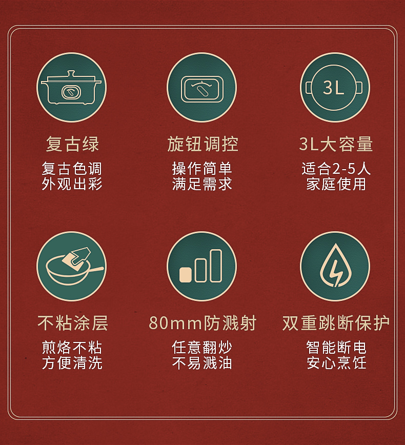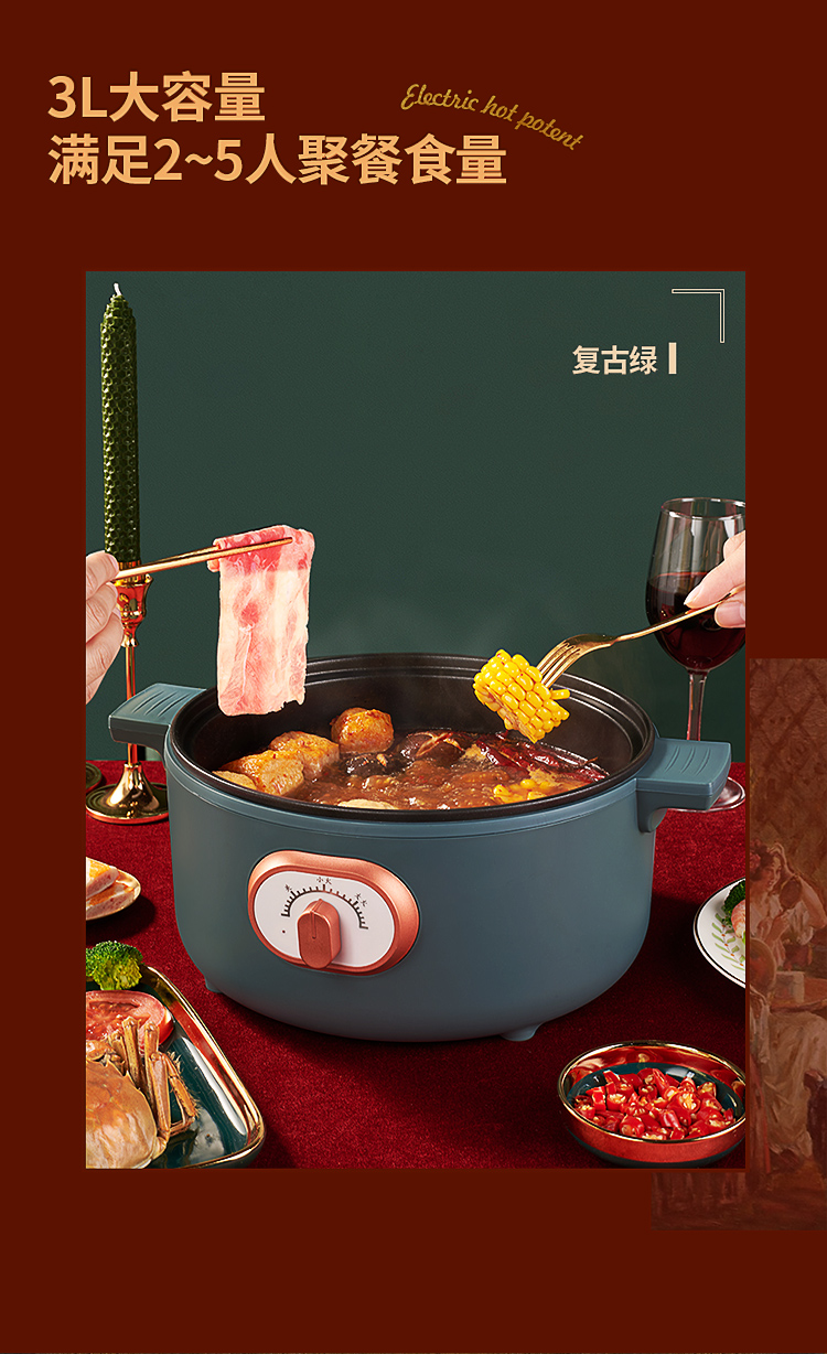 高颜值复古设计,轻奢精致,3L大容量满足家庭所需