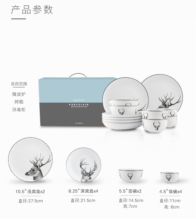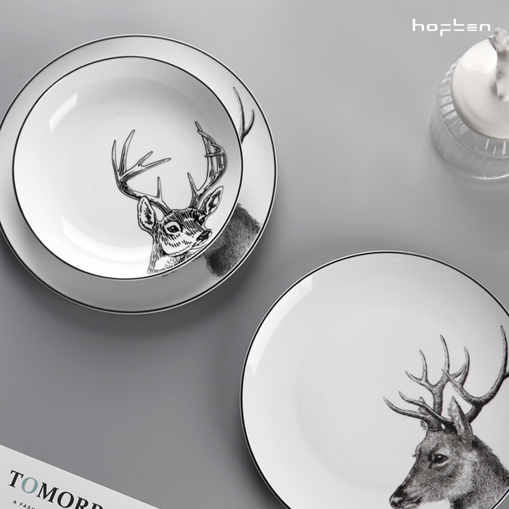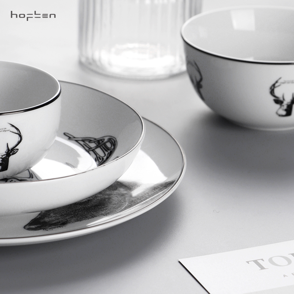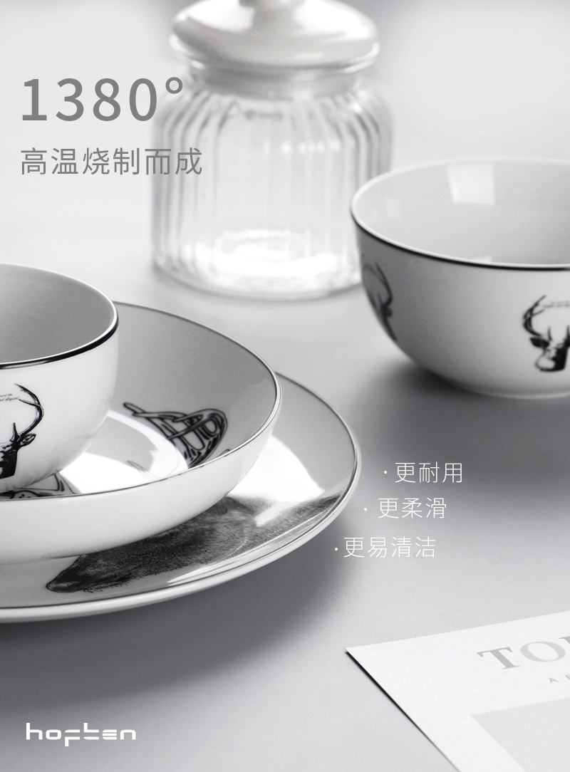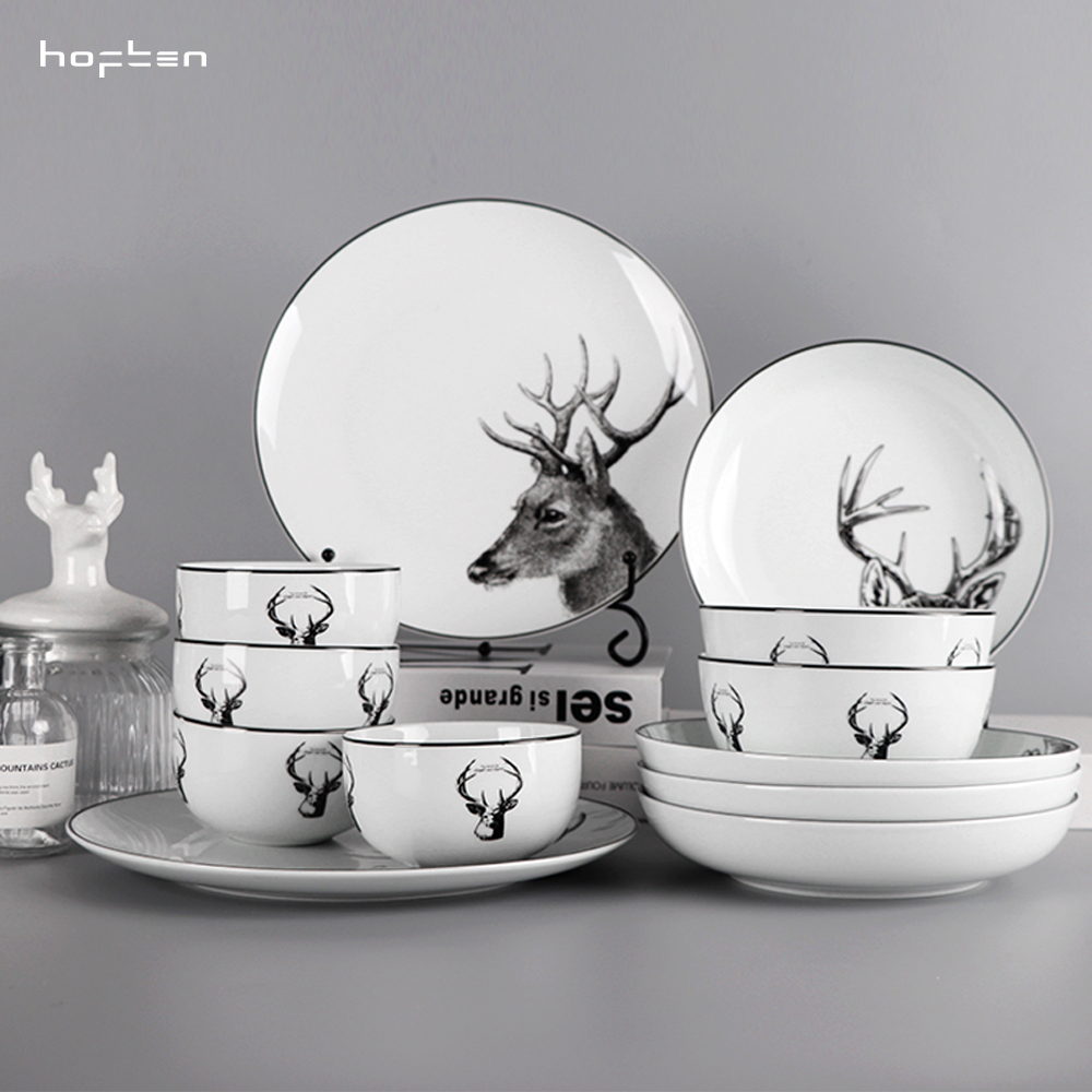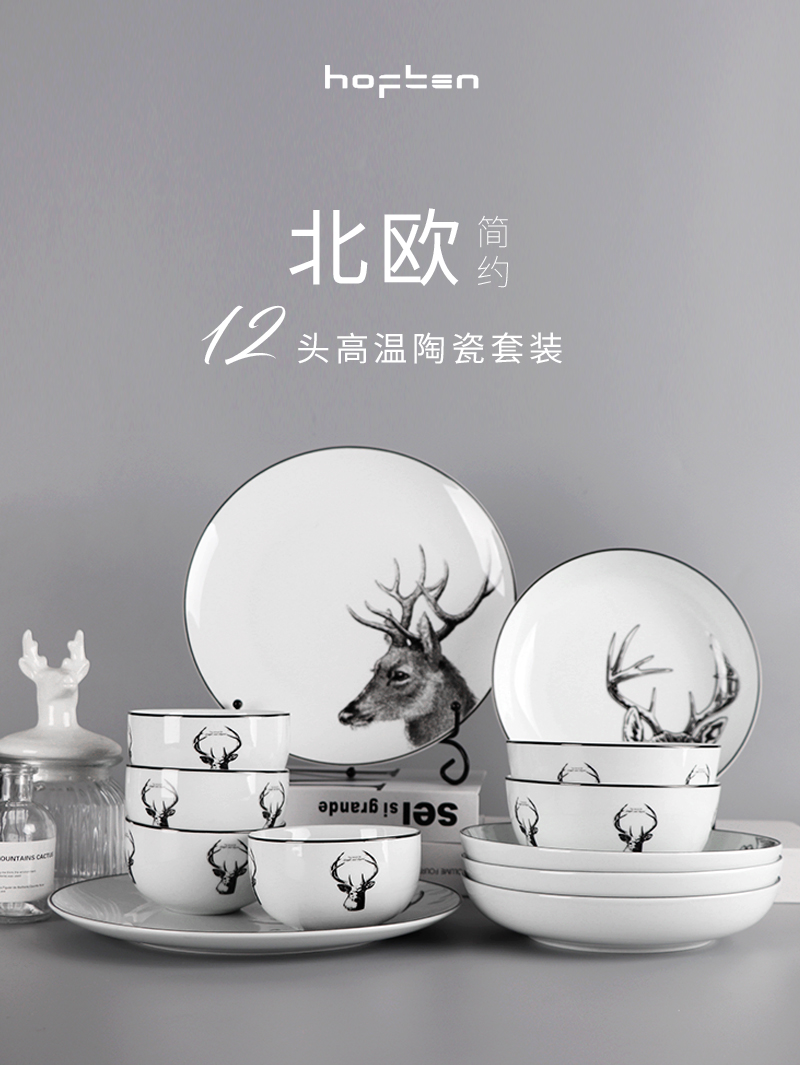 北欧简约HOFTEN赫芬陶瓷餐具套装12头高温送礼家用四口碗盘碟组合