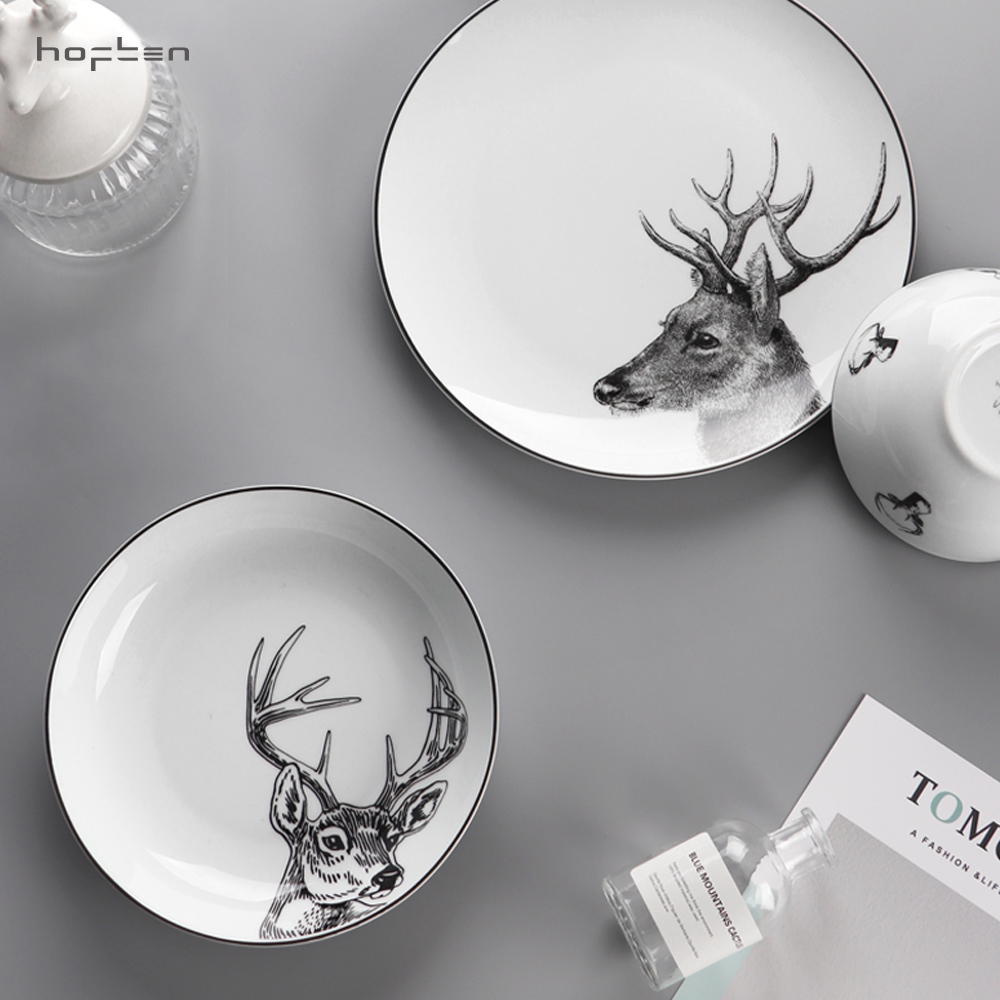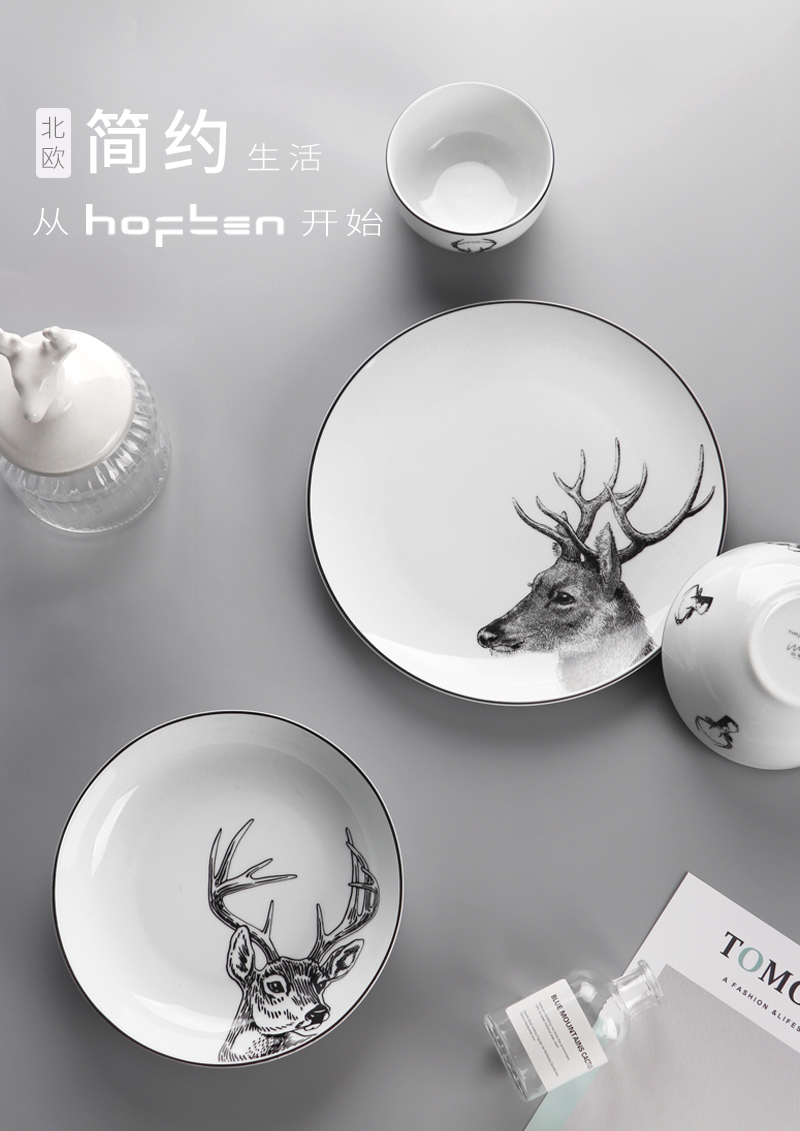 北欧陶瓷简约碗盘创意组合餐具套装家用碗碟碗筷汤碗盘餐具