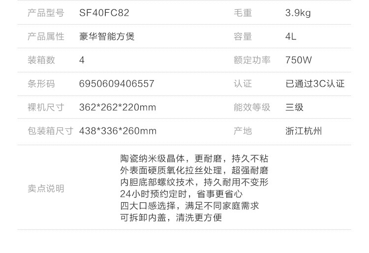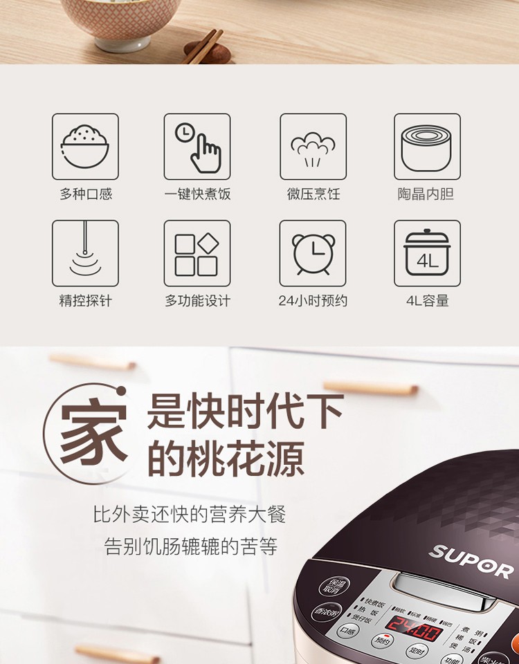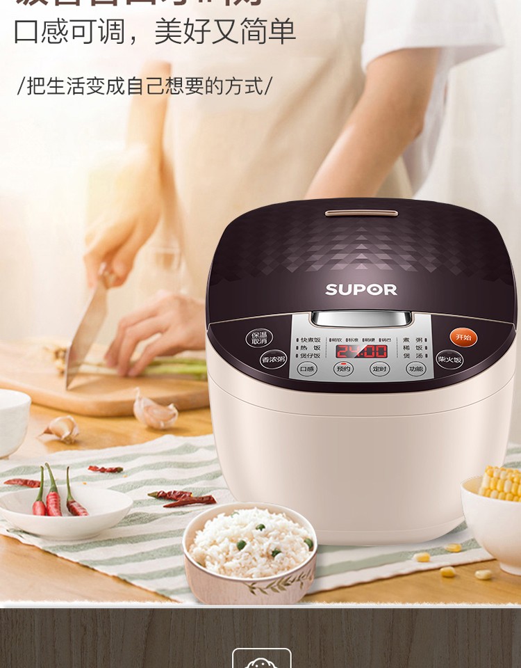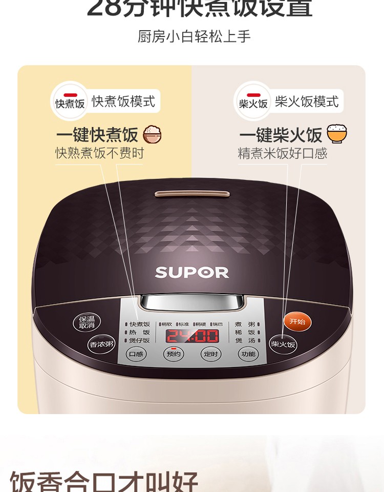 苏泊尔(SUPOR)电饭煲SF40FC82智能预约电饭锅4L陶晶不沾内胆