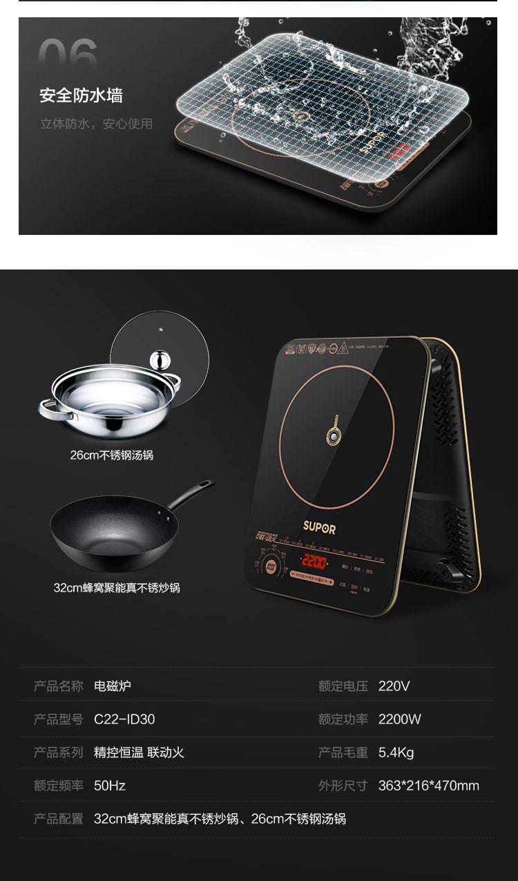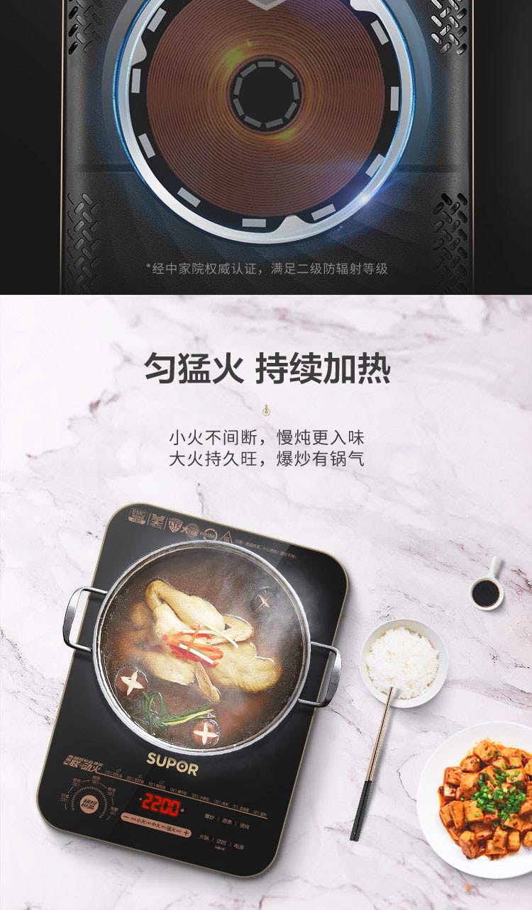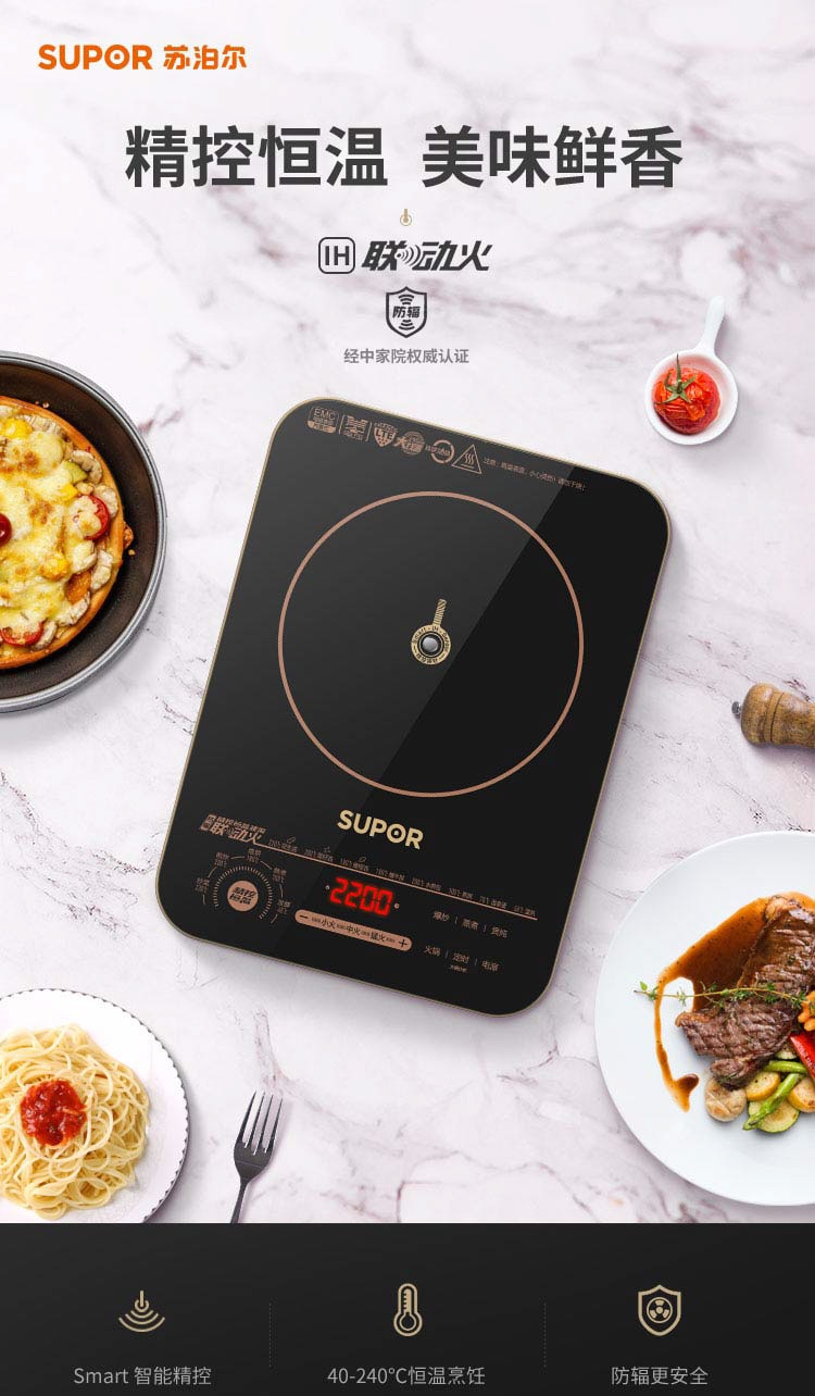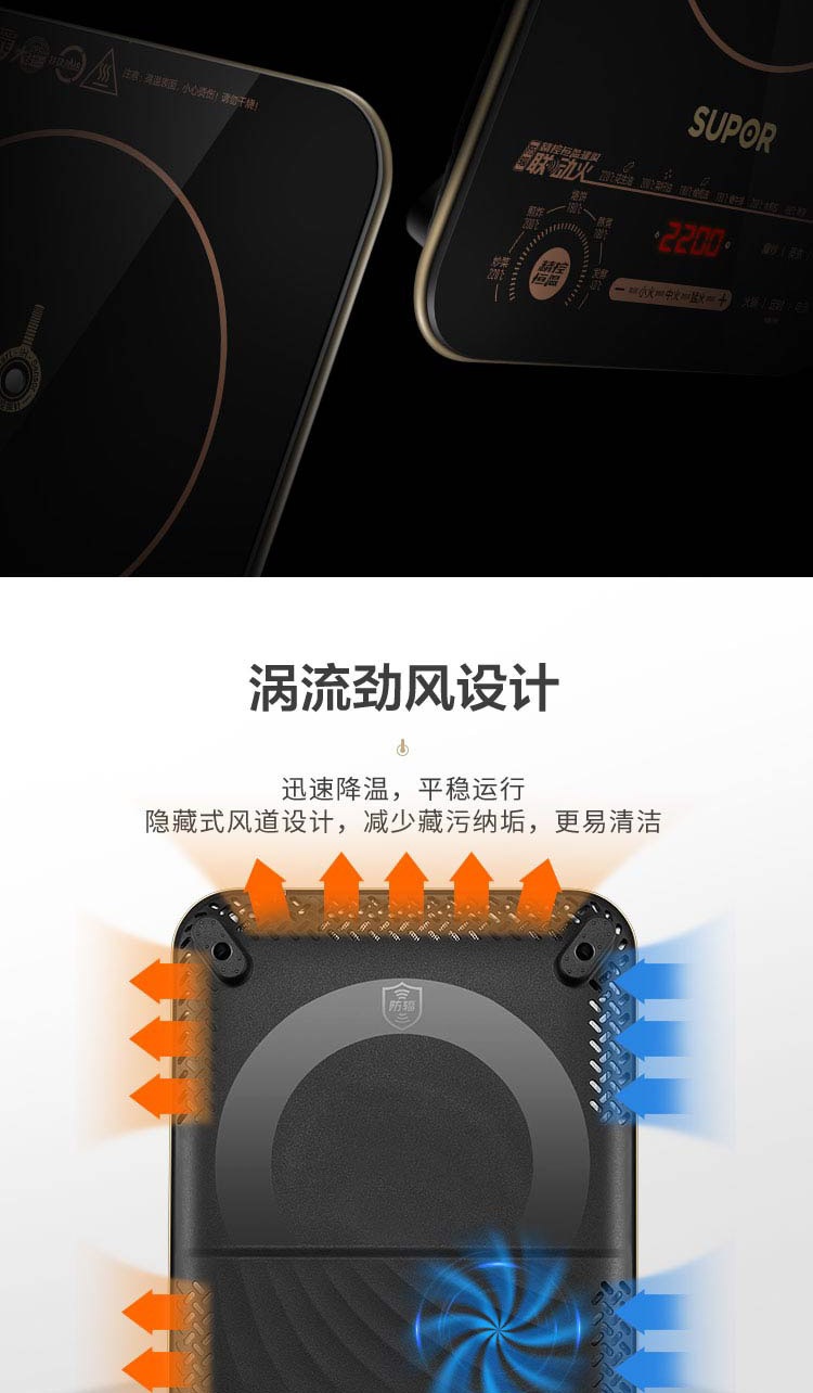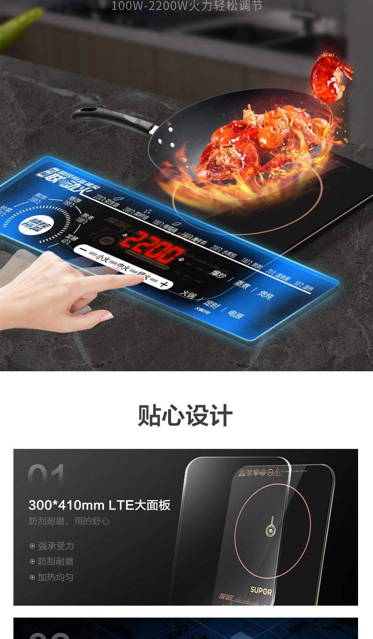 苏泊尔 (SUPOR)联动火电磁炉电磁灶火锅炉家用触屏 2200W超猛火精准控温持续加热C22-ID30