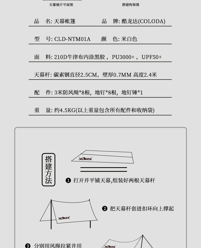酷龙达(Coloda)露营天幕帐篷 CLD-NTM01A