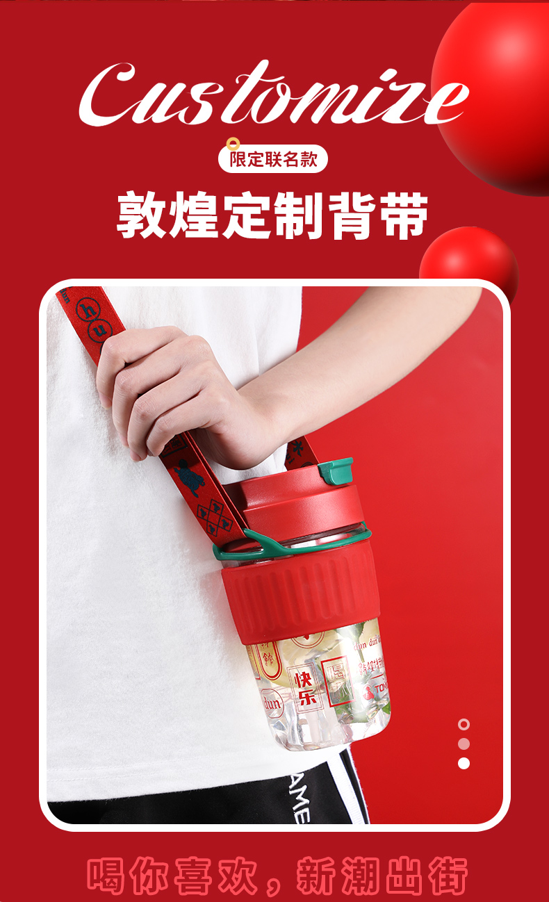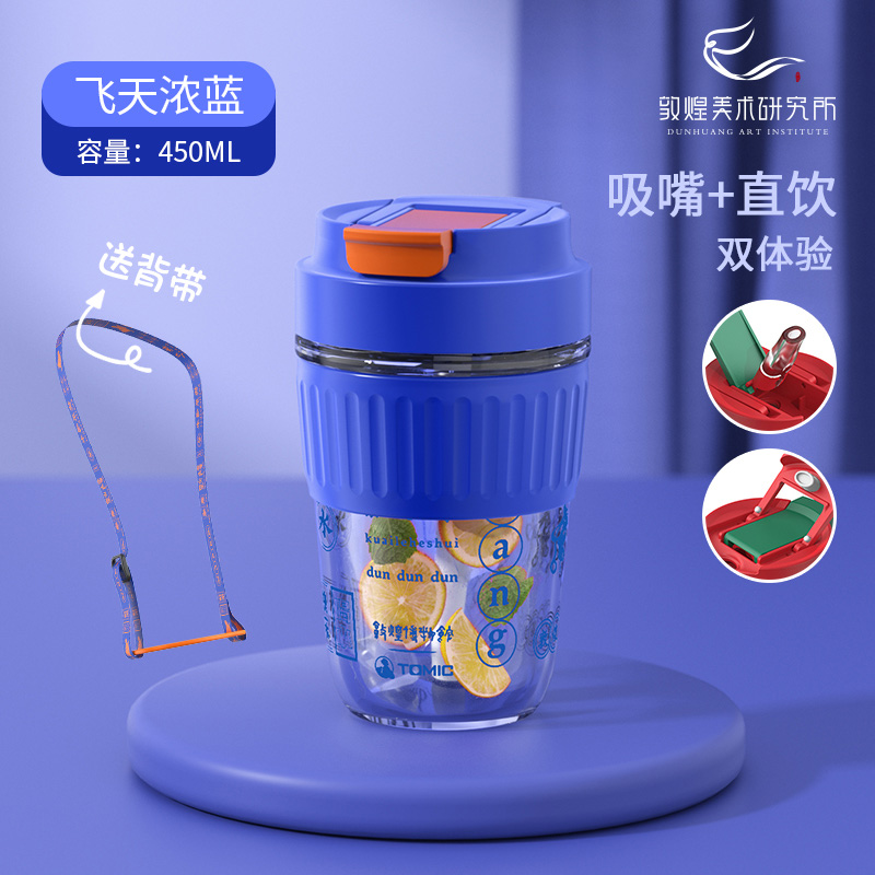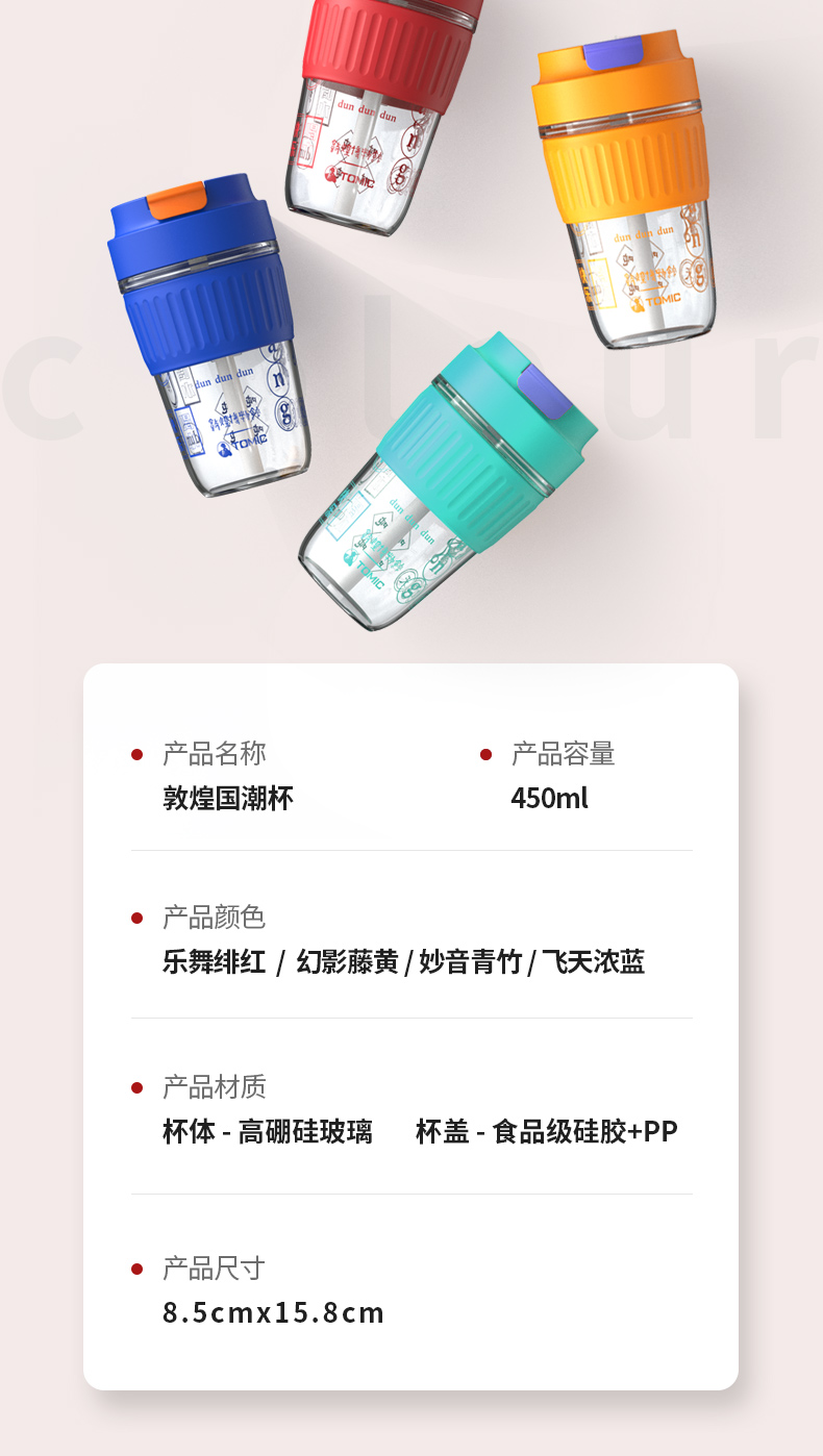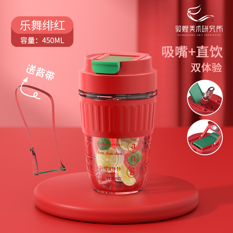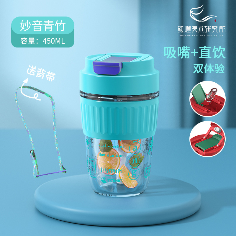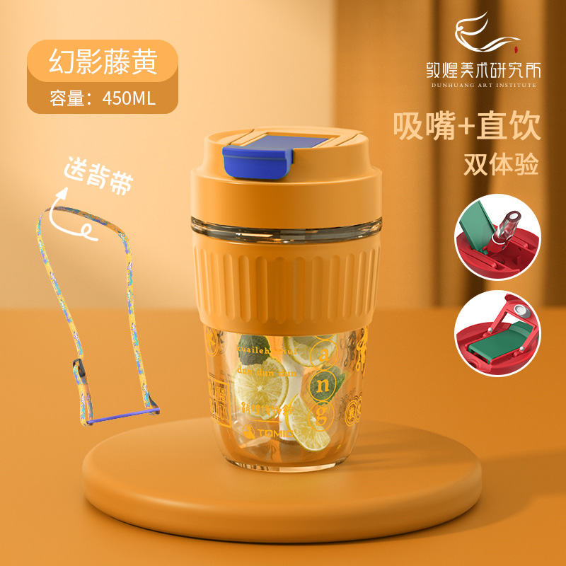 敦煌美术研究所高硼硅玻璃水杯带吸管杯子夏季女便携饮料咖啡杯