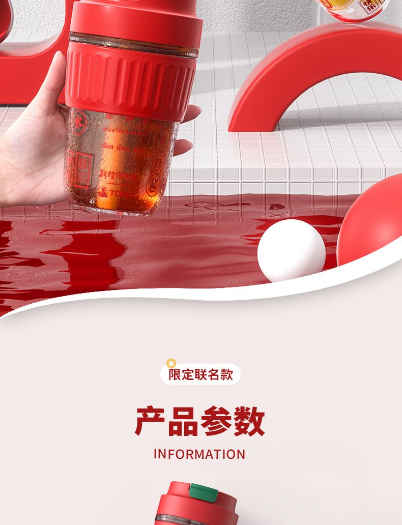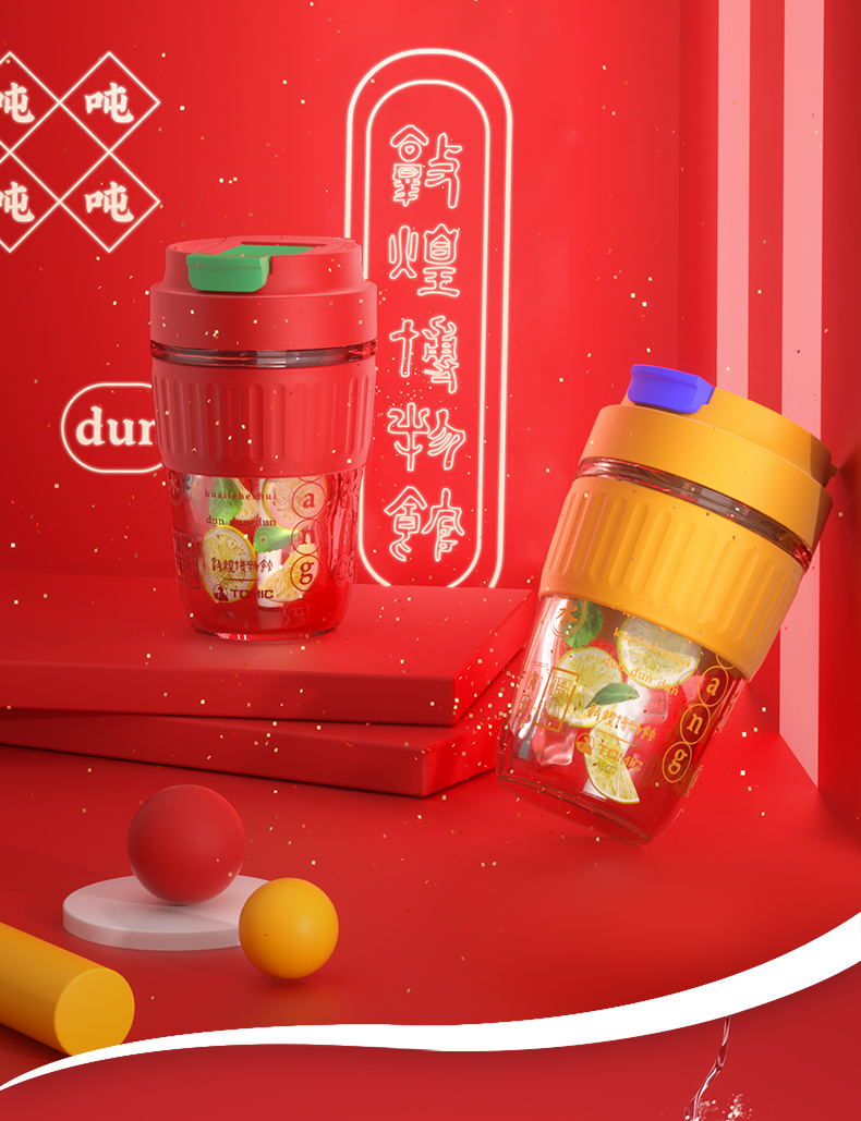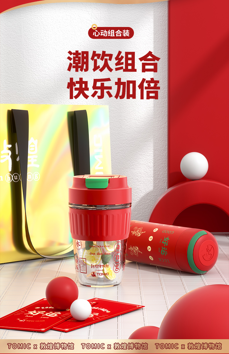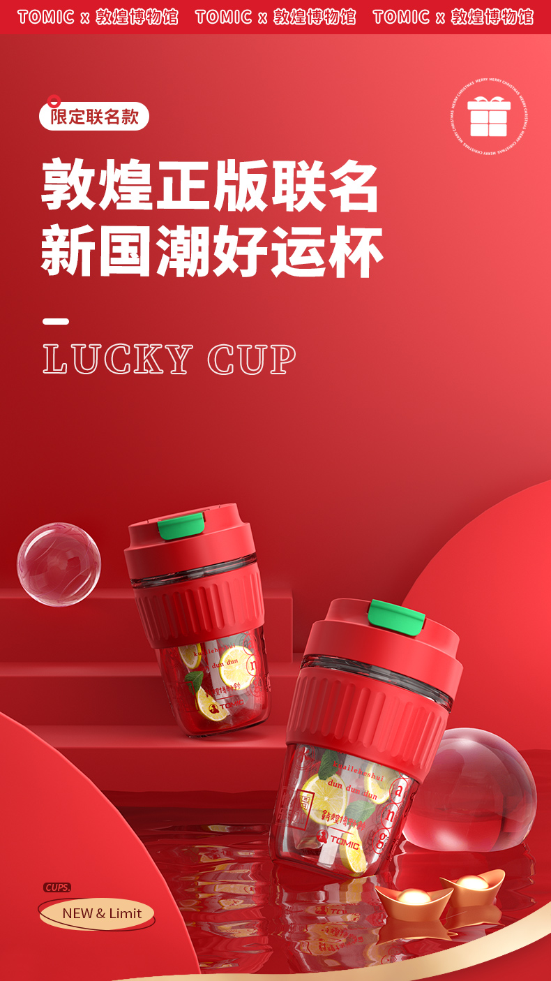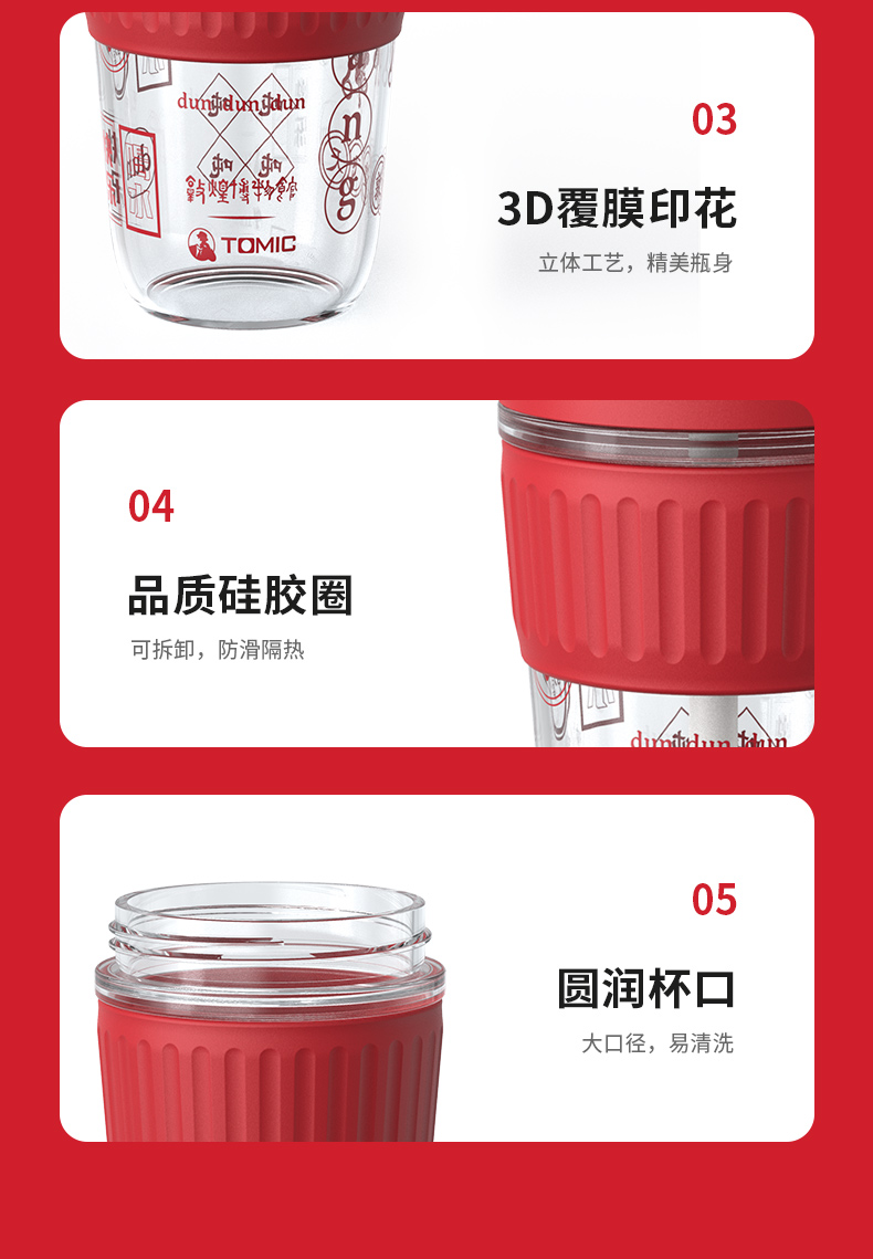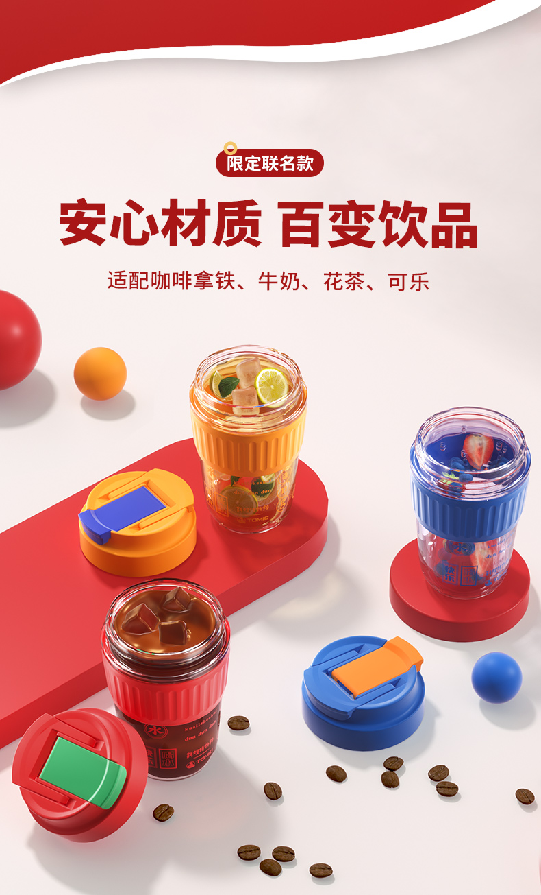 敦煌美术研究所高硼硅玻璃水杯带吸管杯子夏季女便携饮料咖啡杯