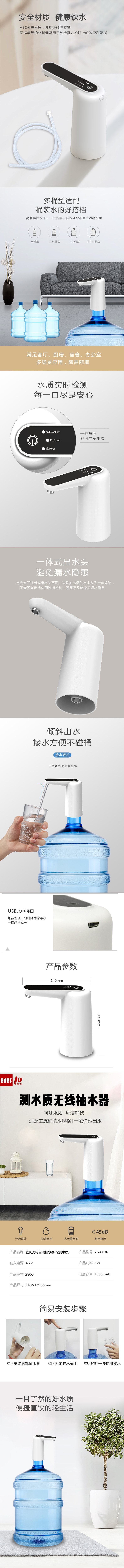 EDEI宜阁水质检测电动上水器YG-C036