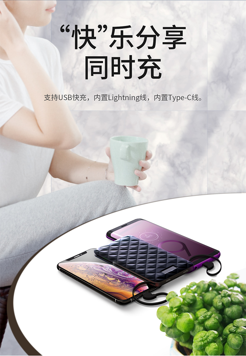 ・ 边充边放;支持手机和充电宝同时充电;