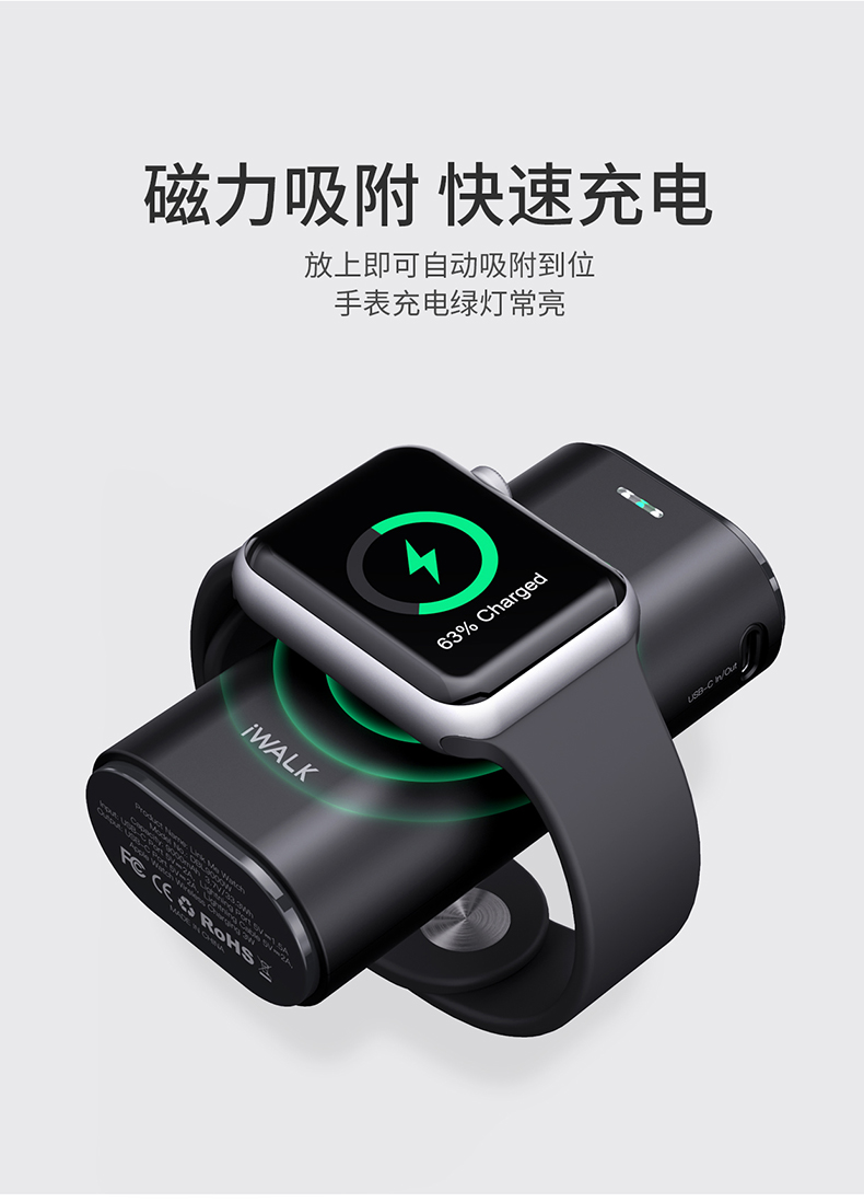 ・磁力吸附,快速充电,手表充电,绿灯常亮。
