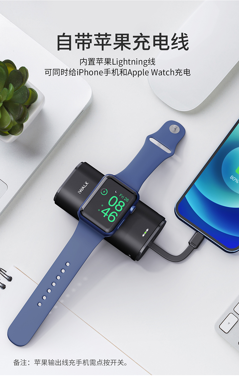 ・ 内置苹果手表磁吸模块和电池,自带苹果充电线。