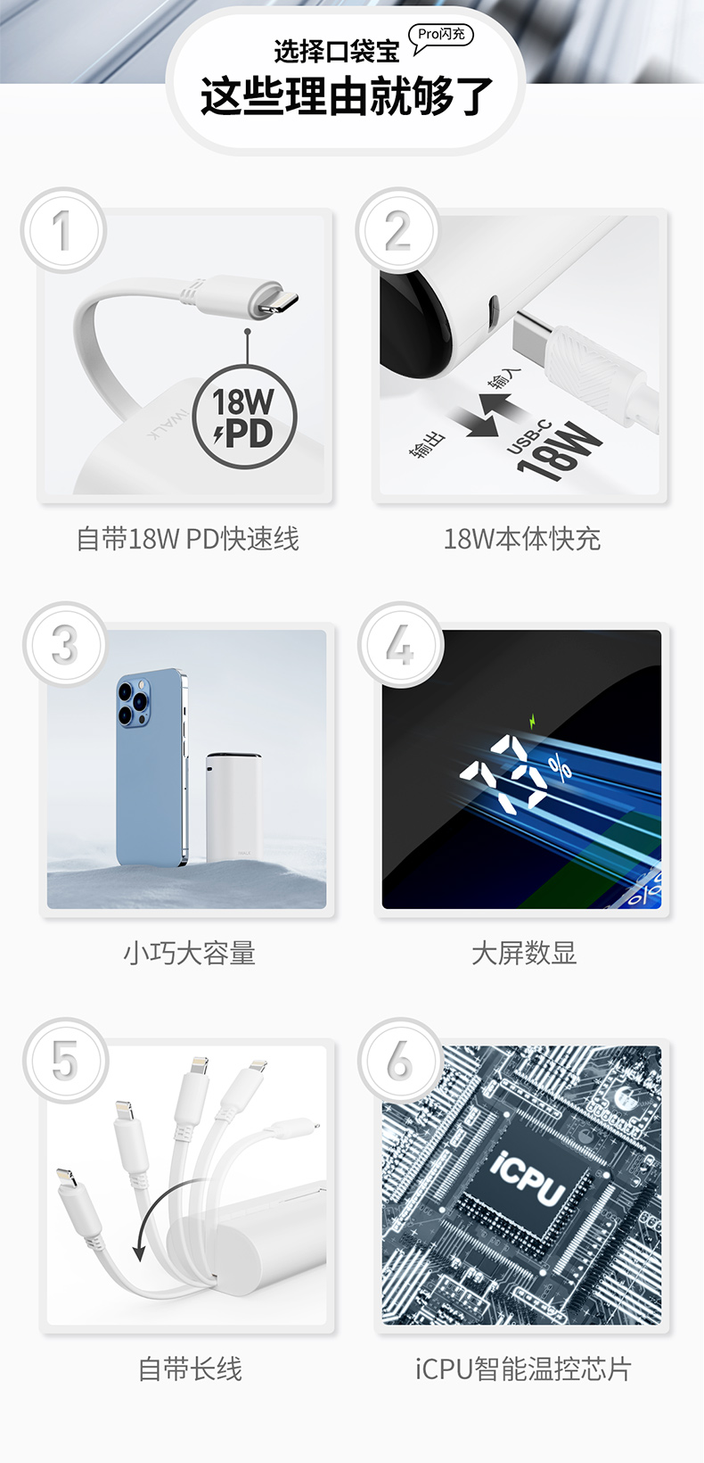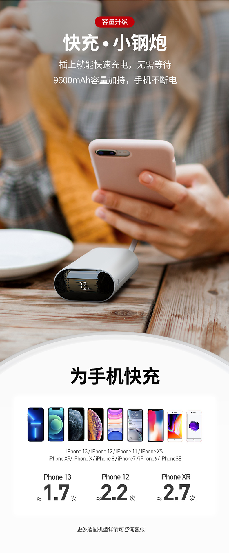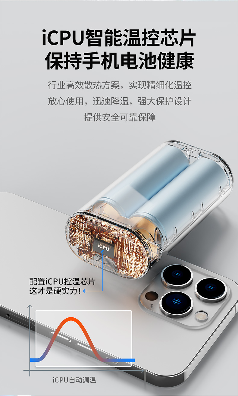 ・小身材,大容量9600毫安。iCPU智能温控芯片,保持手机电池健康