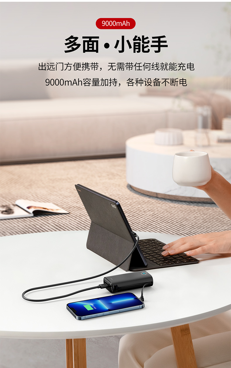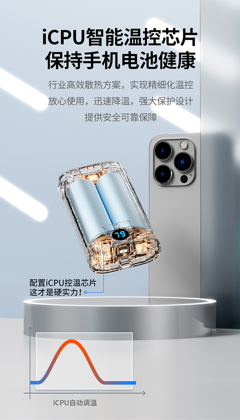 ・小身材,大容量9000毫安。iCPU智能温控芯片,保持手机电池健康