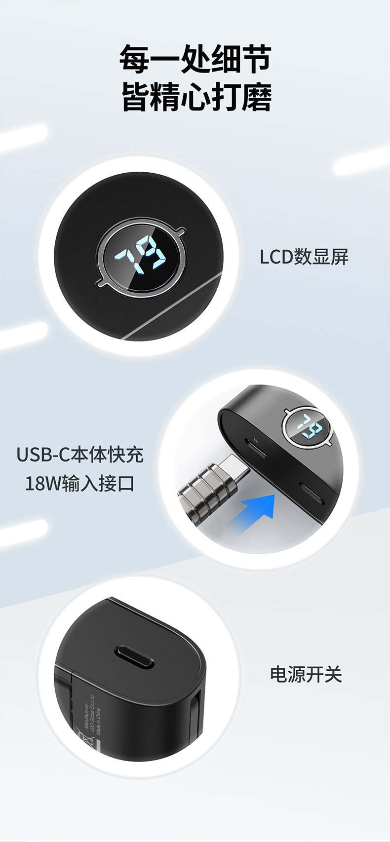 ・LCD数显,剩余电量一目了然,精准掌握剩余电量
