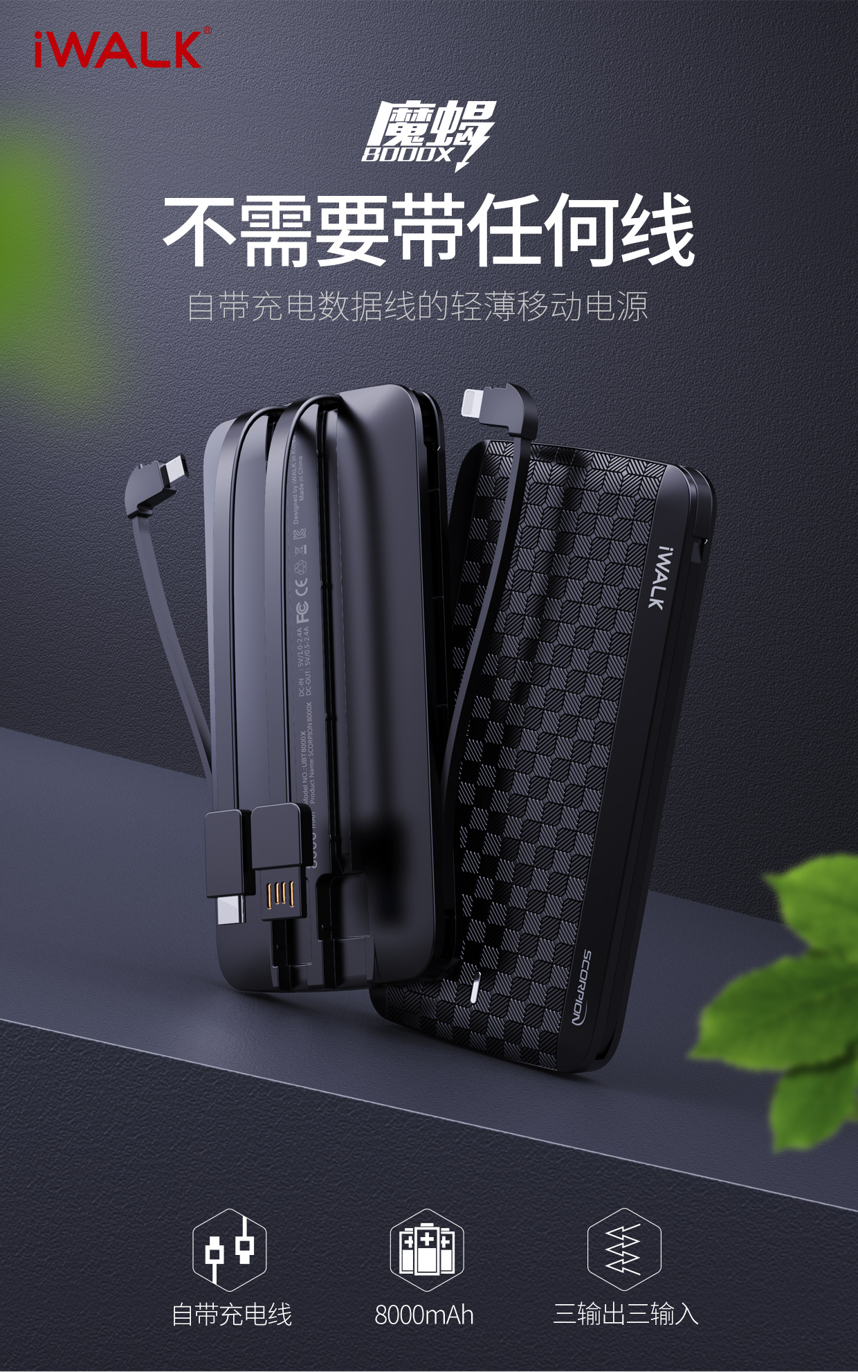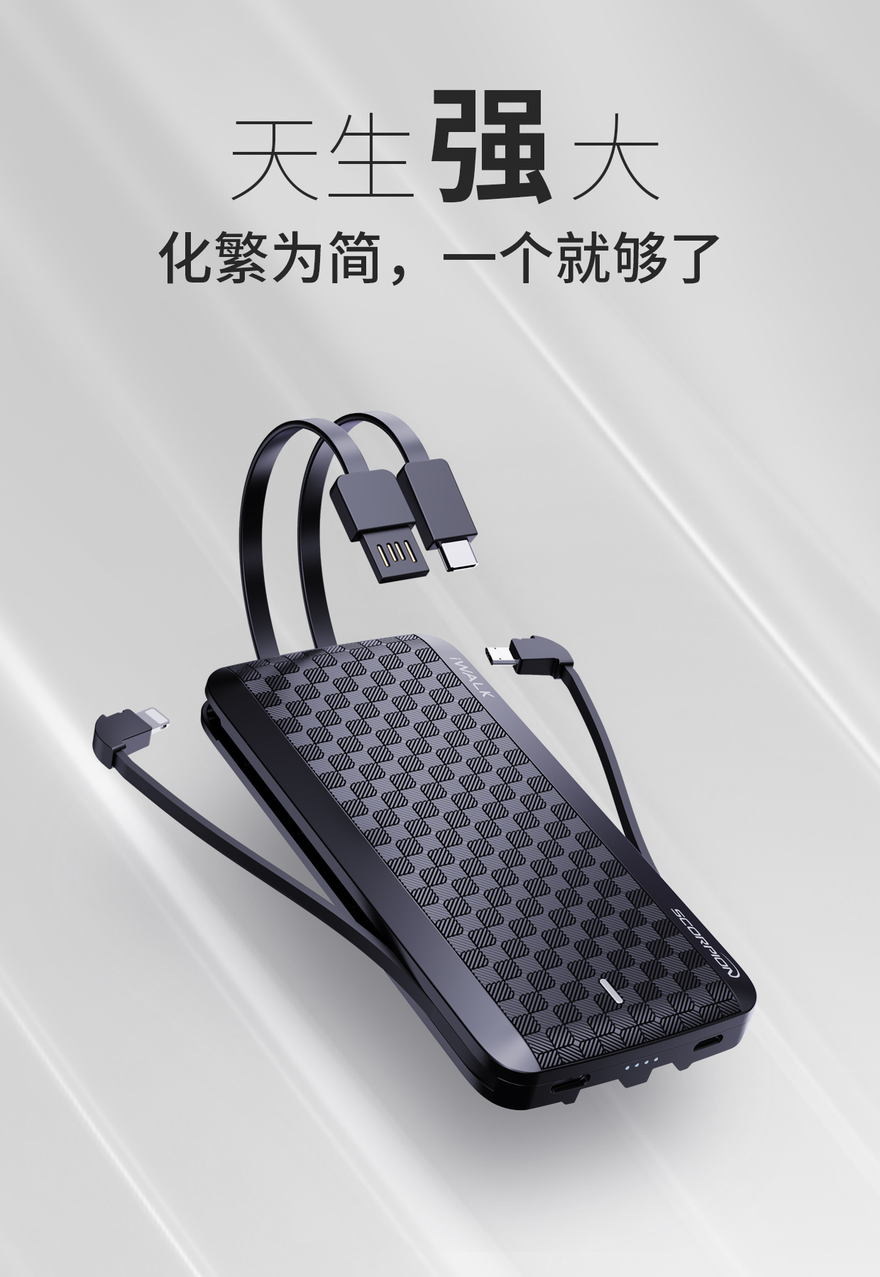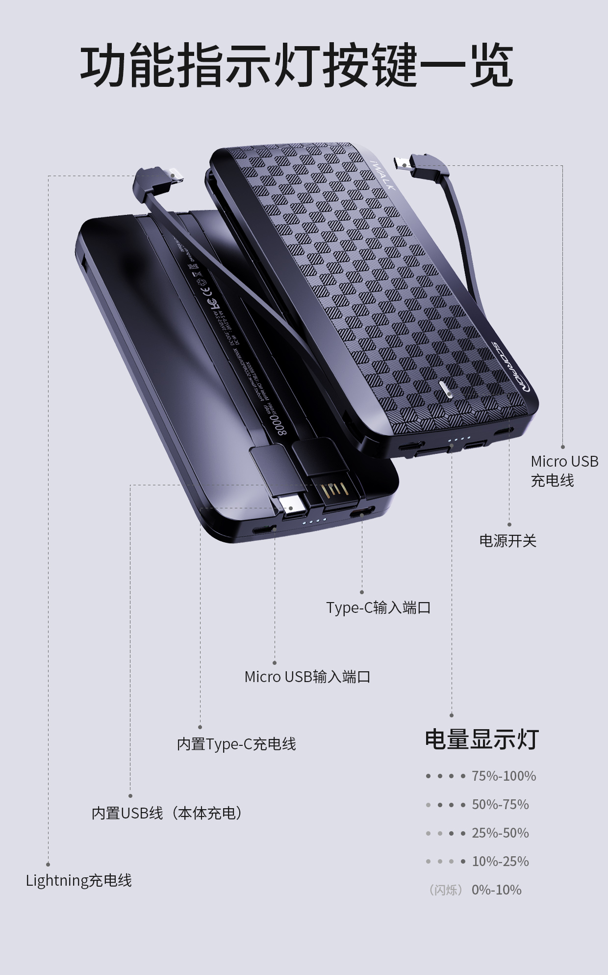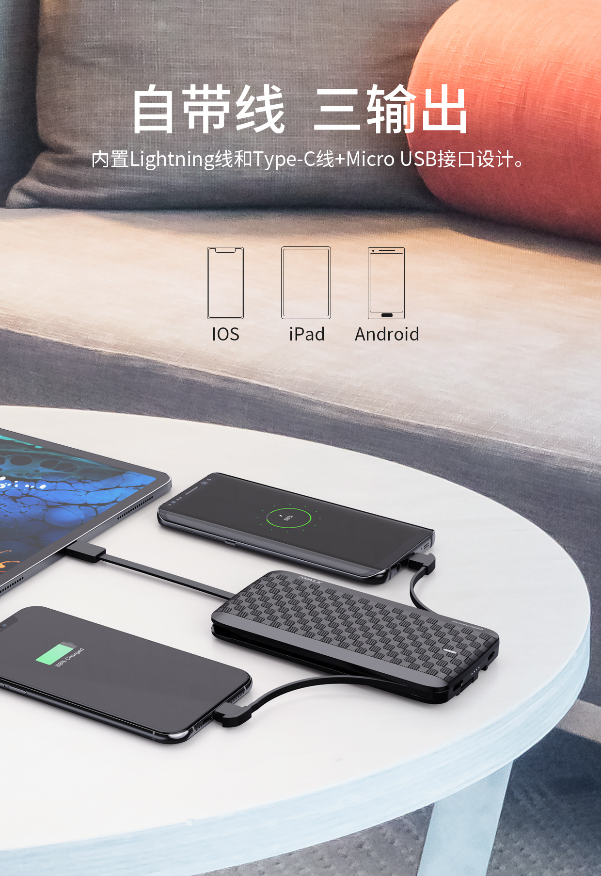 ・ 自带Lightning输出线,Type-C输出线,Micro-USB输出线以及USB输入线