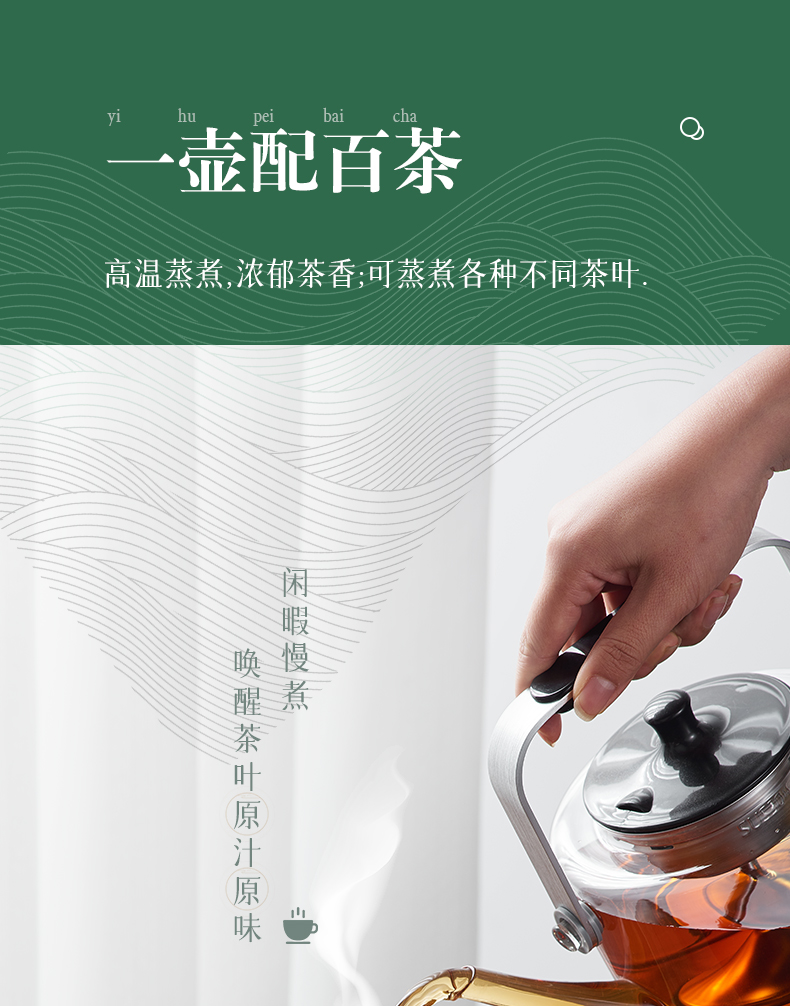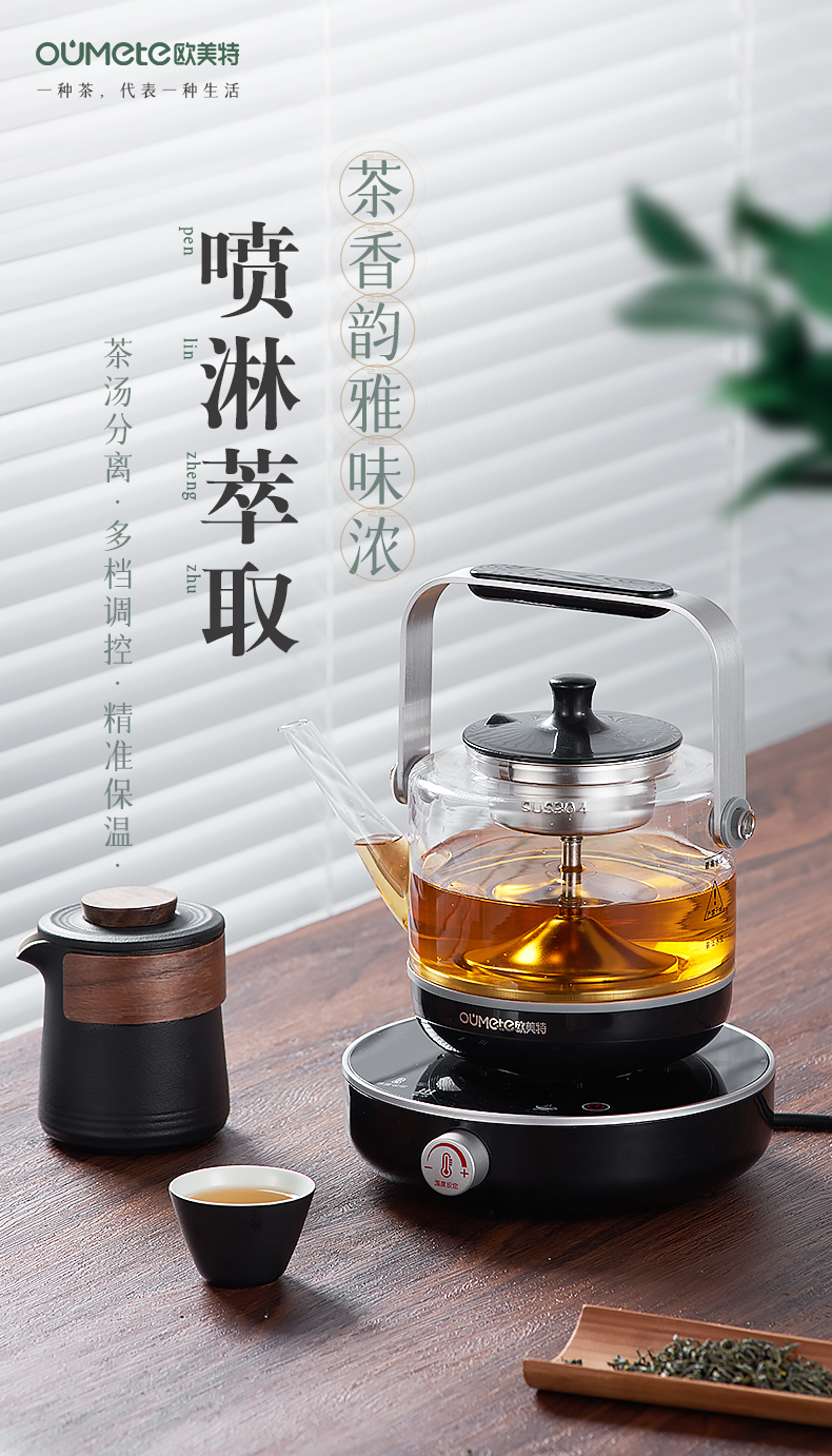 欧美特家用蒸汽煮茶器智能玻璃茶具