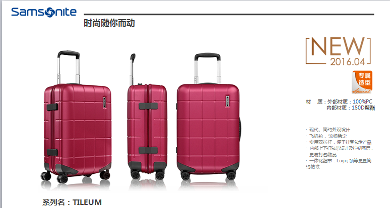 I74*40001 新秀丽四轮拉杆箱 20寸-红色 尺 寸:375×550×225mm 装箱明细:1pcs/箱